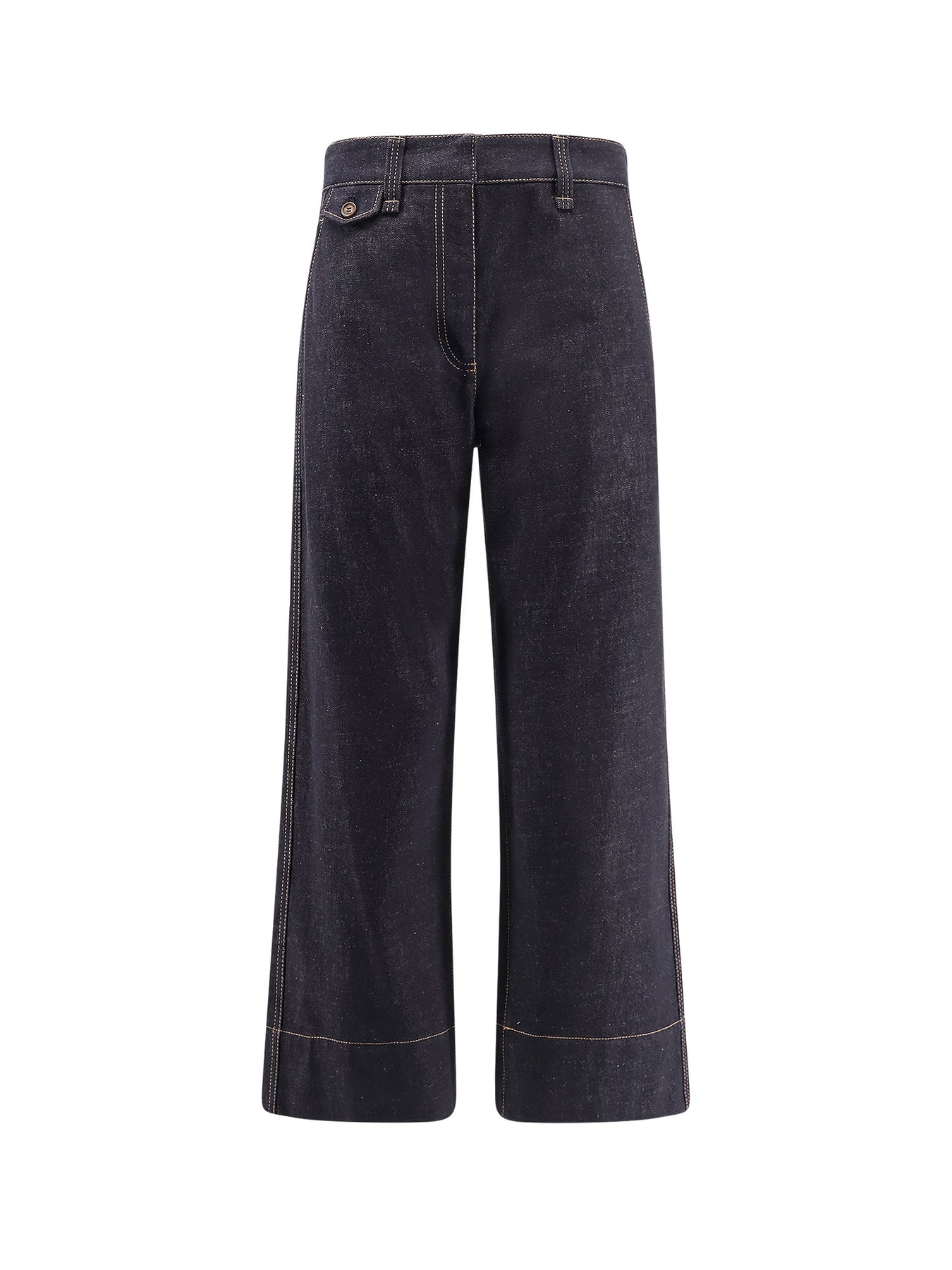 Closure with zip and two metal hooks High waist Five pockets Made in Italy 100% cotton SKU: MP134P4026C001