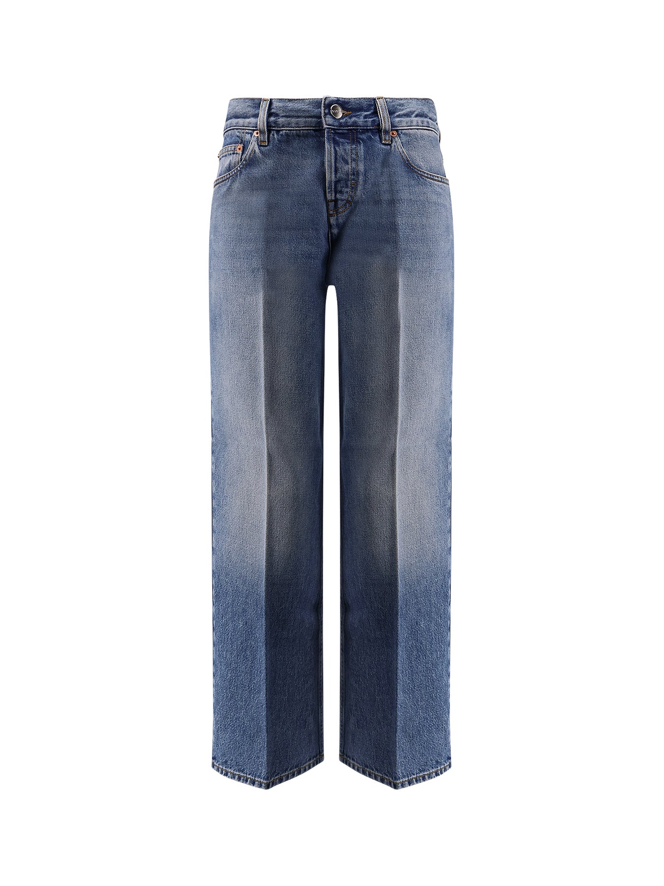 Certified stone-washed light blue cotton denim Zip and metal button closure Five pockets Straight cut Made in Italy 100% cotton SKU: 812233XDC7S4009