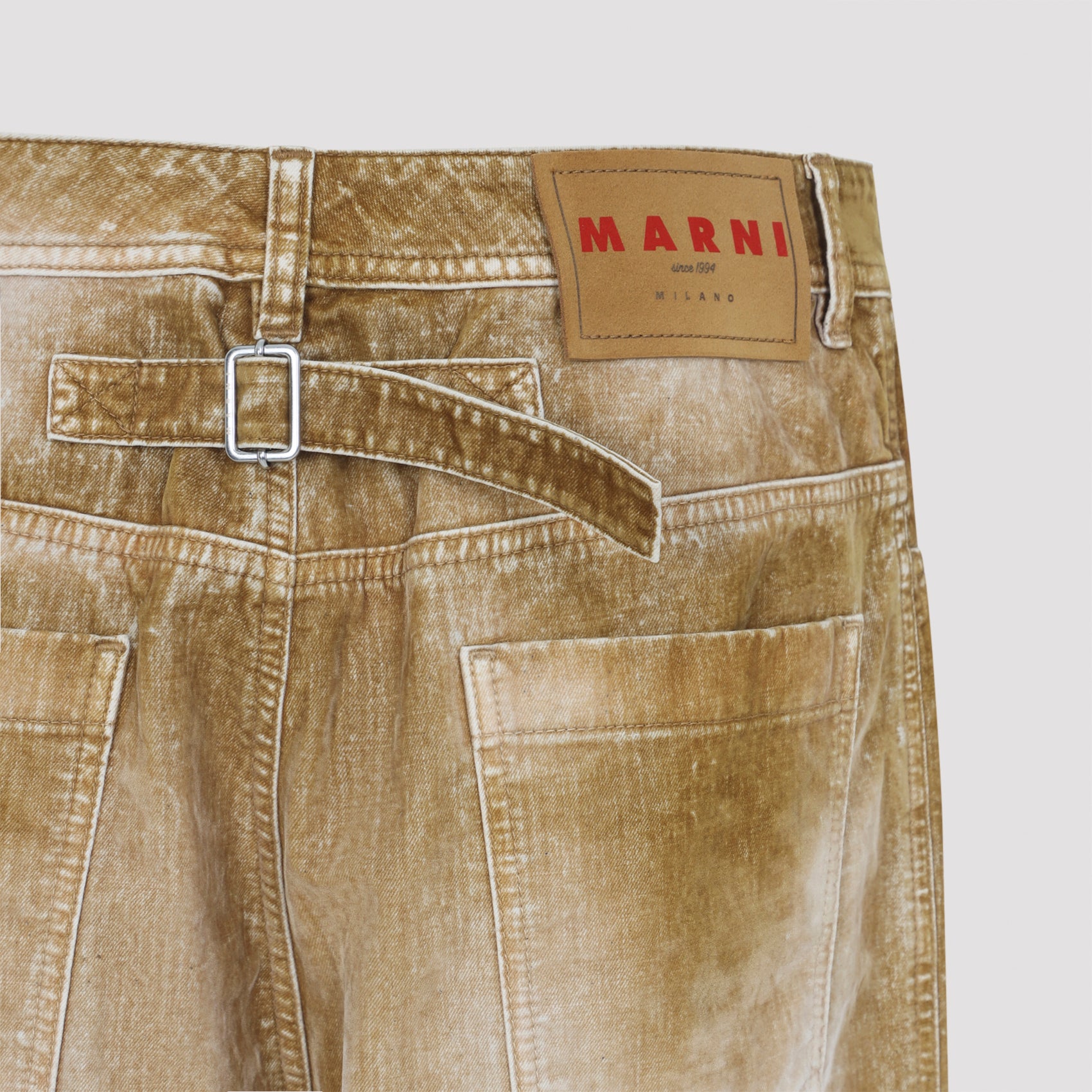 Marni Cotton Washed Jeans. Brown washed cotton, regular waist, 5 pocket-style, front button and zip fastening, belt loops, straight legs, adjustable strap on back. Regular fit.