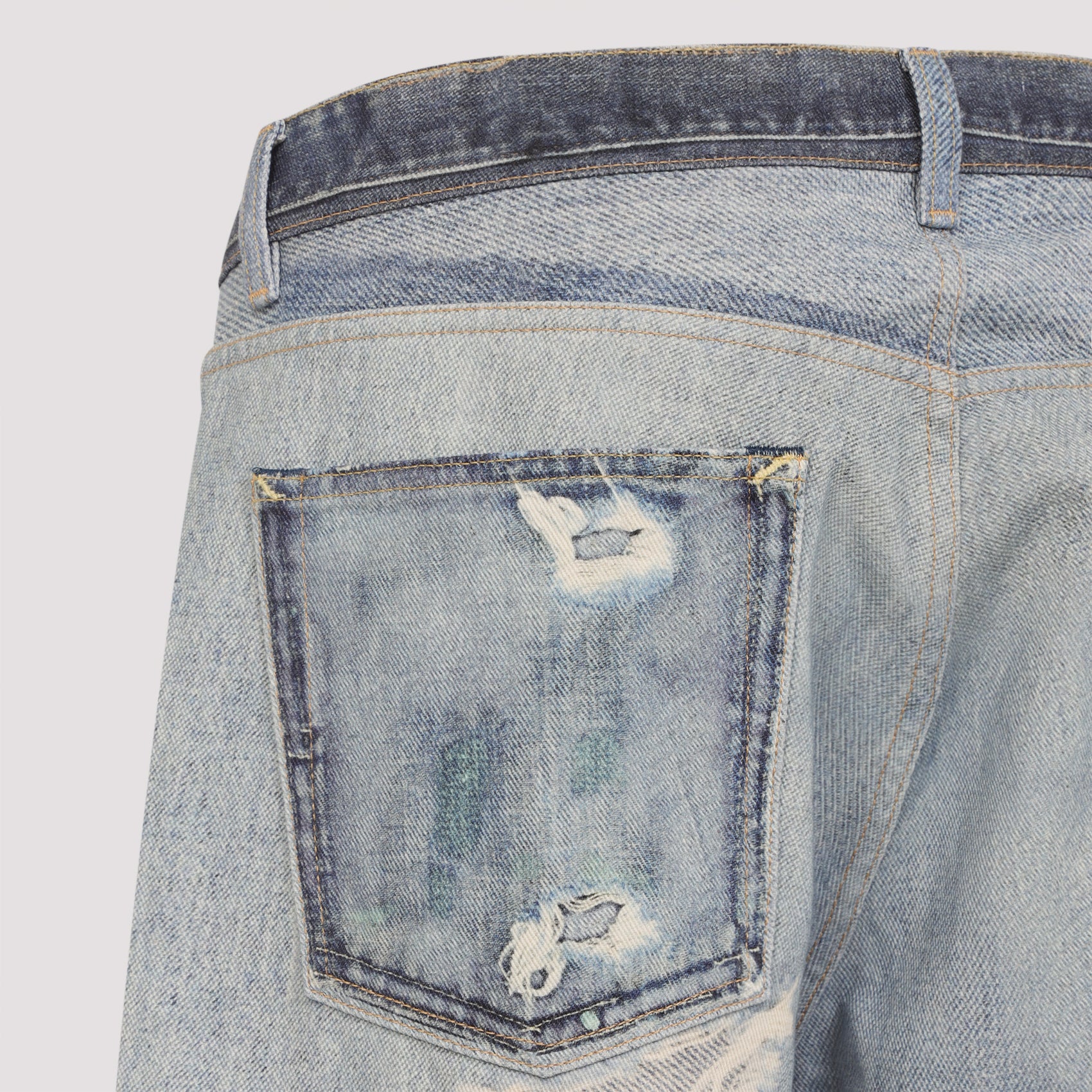 Our Legacy Digital Denim Blue Print Cotton Third Cut Jeans. Pure digital denim blue print cotton jeans, front concealing zipped fastening, front buttoned fastening, belt loops, five pockets design, back black patch, straight hem. Overused effect.