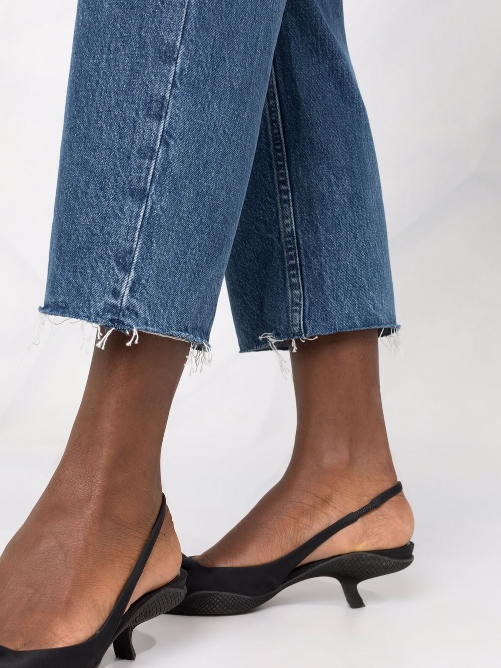 Blue cotton cropped straight-leg jeans from TOTEME featuring whiskering effect, front button fastening, belt loops, classic five pockets and cropped.