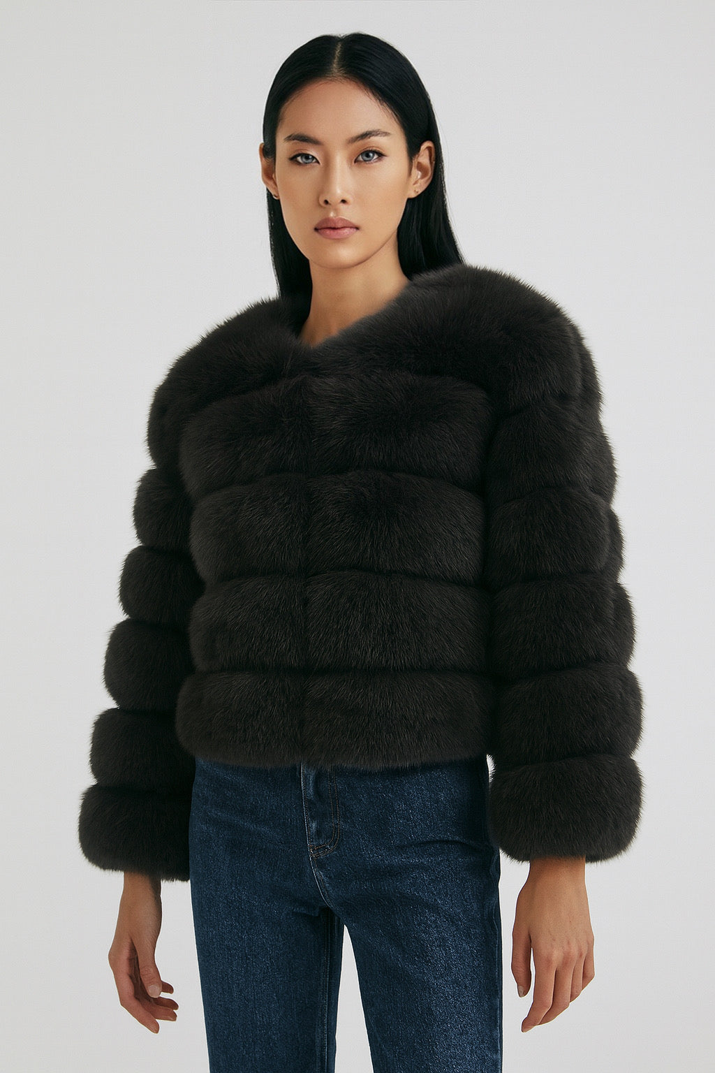 Giacca Rouge Dark Gray in Pelliccia di Volpe