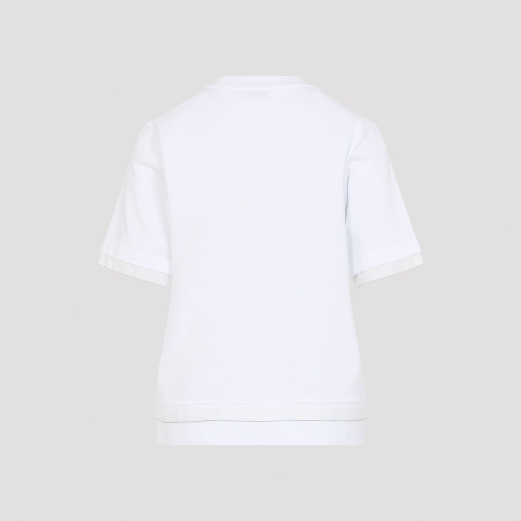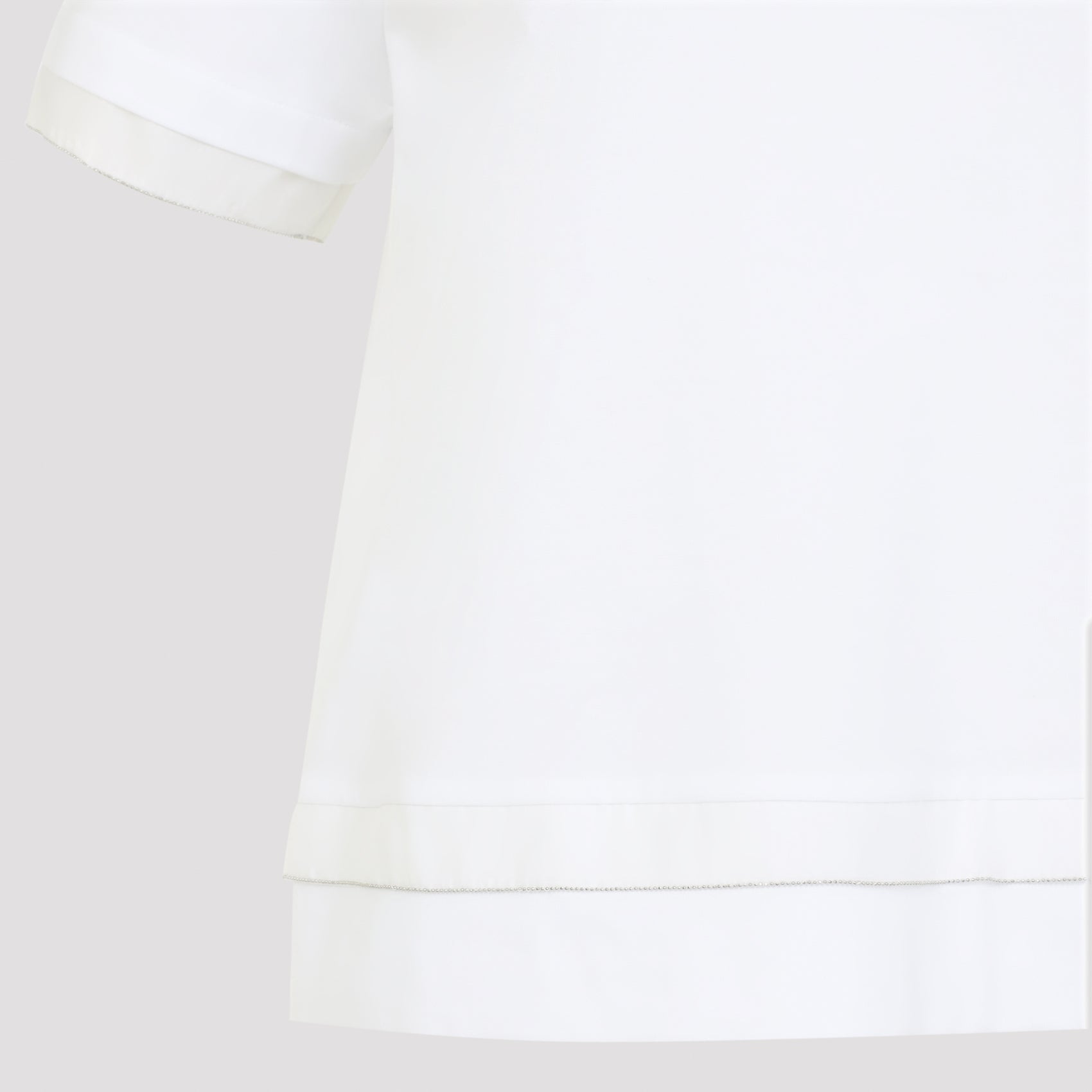 Peserico White Cotton T-shirt. Crafted from white stretch cotton jersey, edges with two-layer construction and silver-toned metal details, it features a round neckline, short sleeves and straight hem.