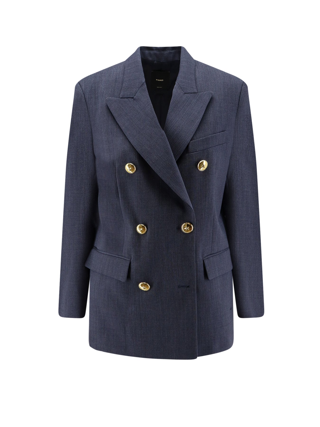Double-breasted Gold-tone metal button closure Peak lapel Flap pockets Made in Italy 55% polyester, 44% wool, 1% elastane Lining: 67% acetate, 33% polyester SKU: 105617A2SNG07