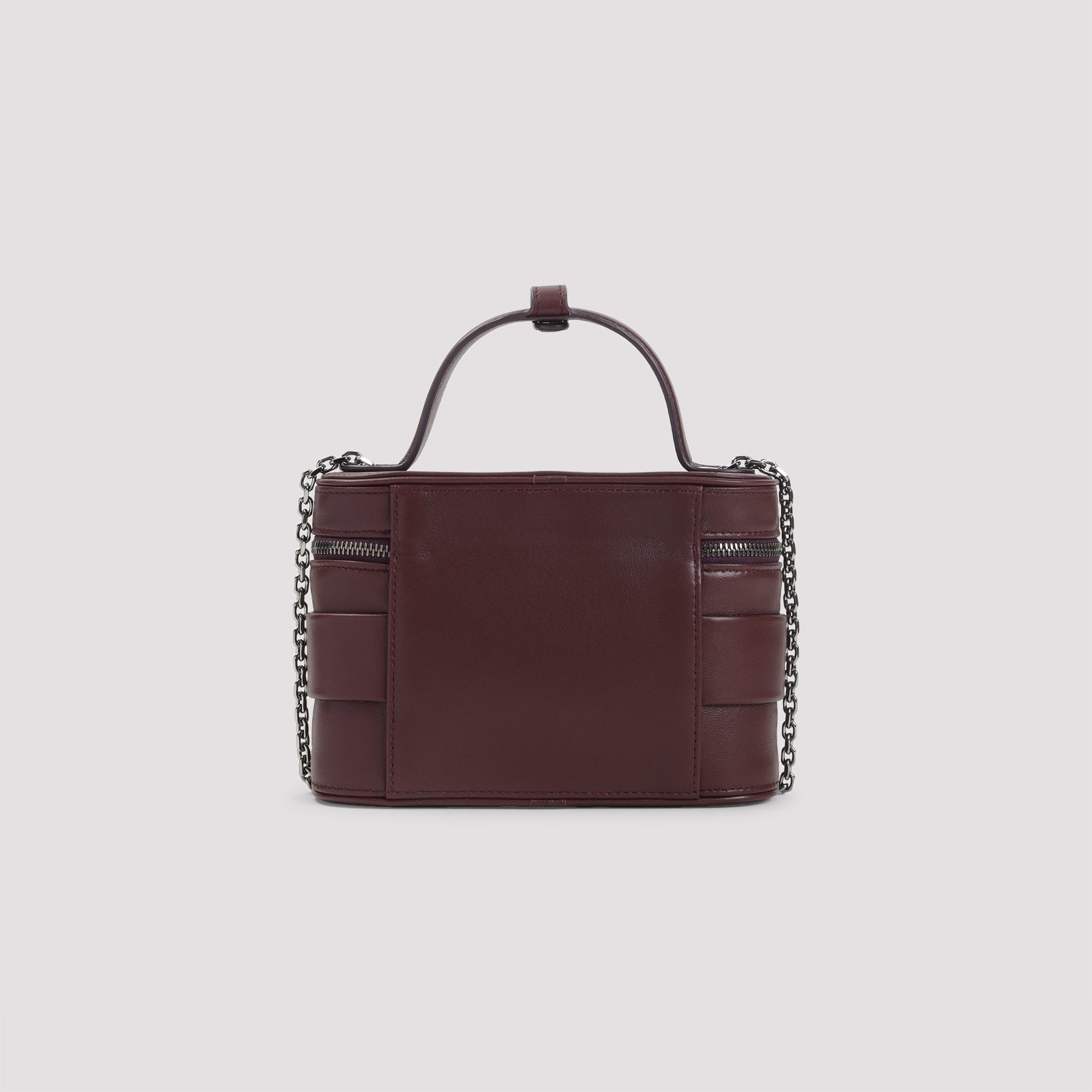 Roger Vivier Dark Bordeaux Nappa Leather Vanity Micro Bag. Pure dark bordeaux nappa leather bag, top handle, top silver-tone chain shoulder strap, front two-ways zipped fastening, front tonal strap, front squared buckle with crystal details, one main compartment.