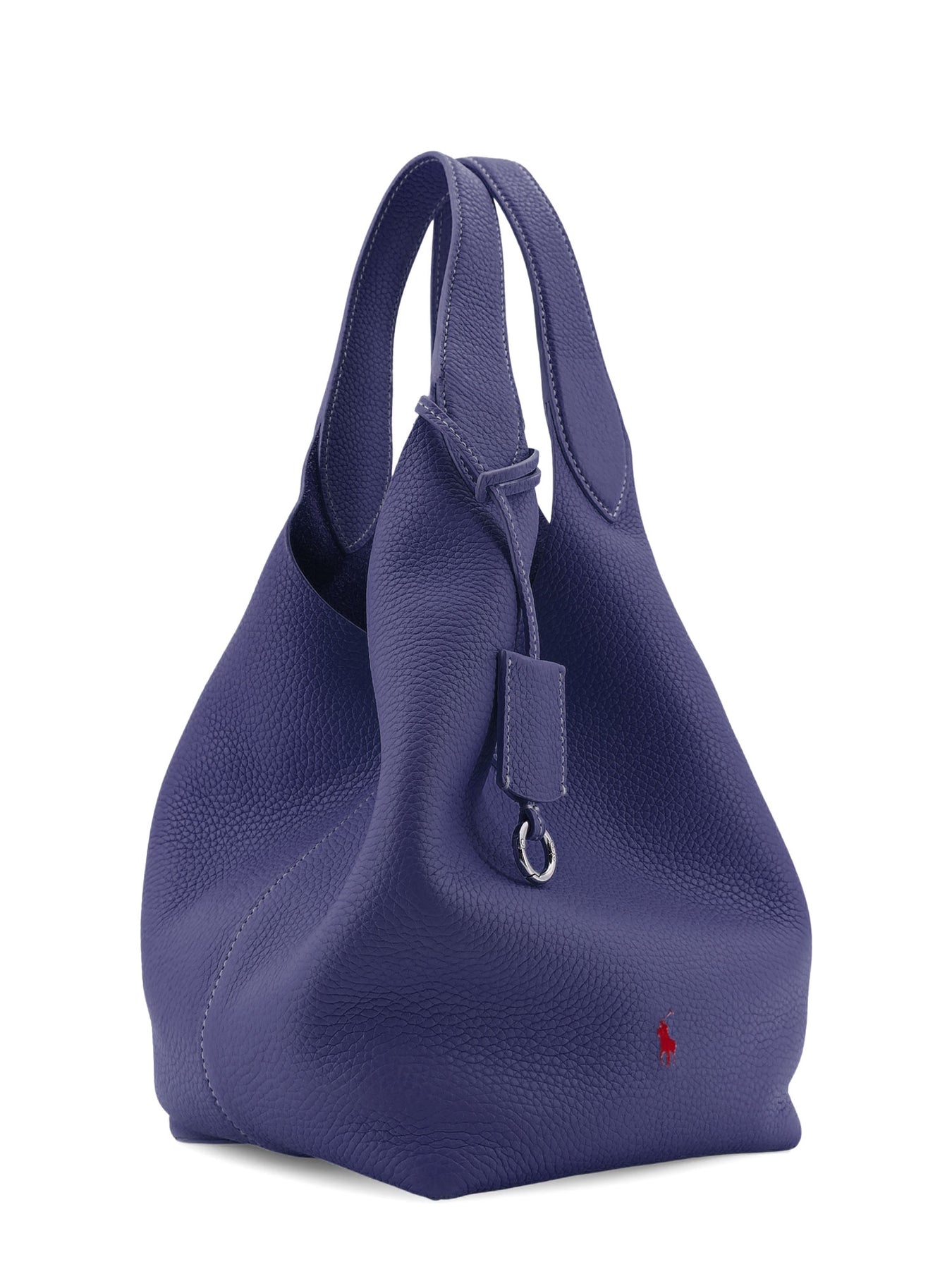 Double leather handle Hook and snap closure Engraved logo Metal ring charm Leather W: 39.5 cm, H: 28.5 cm, D: 18 cm SKU: 428938031011