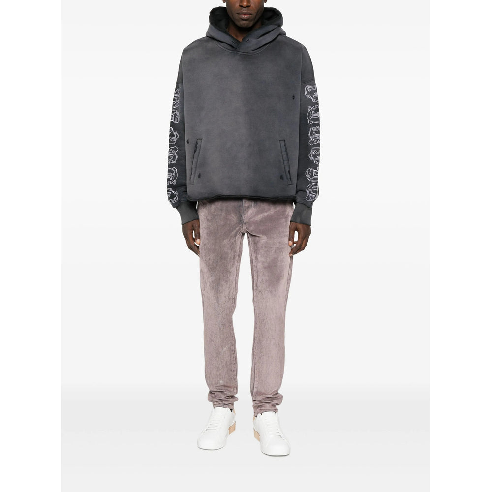grey distressed finish classic hood kangaroo pocket embroidered detail