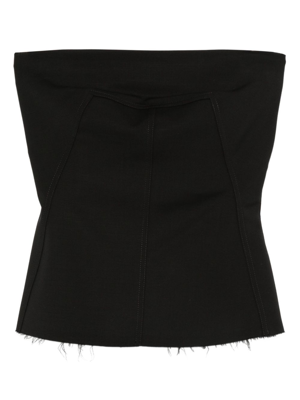 black exposed rear zip fastening raw-cut hem