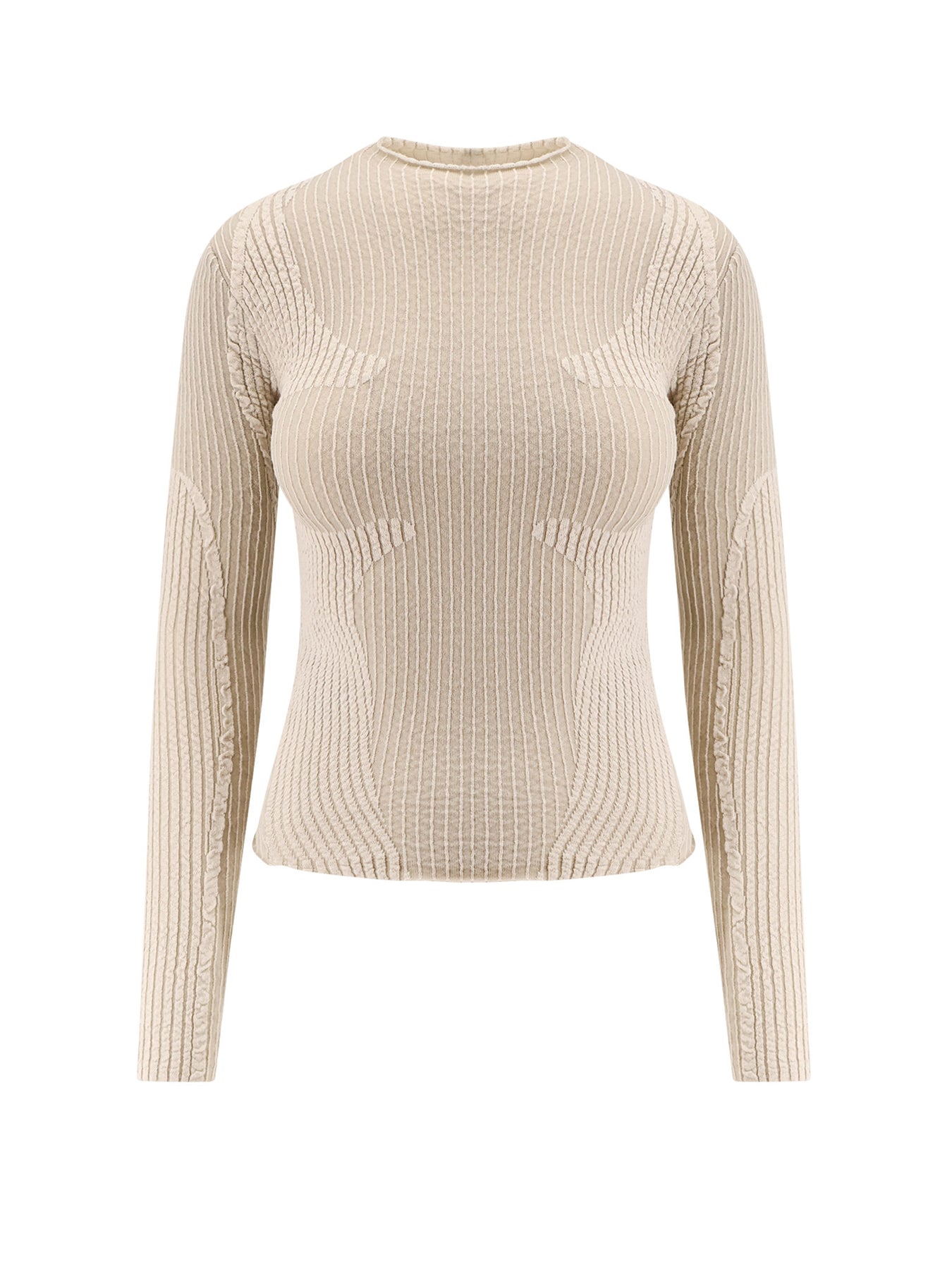 High collar Long sleeves Ribbed motif Made in Italy 74% cotton 24% polyamide 2% elastane SKU: RBWW022YA10_BEG0002