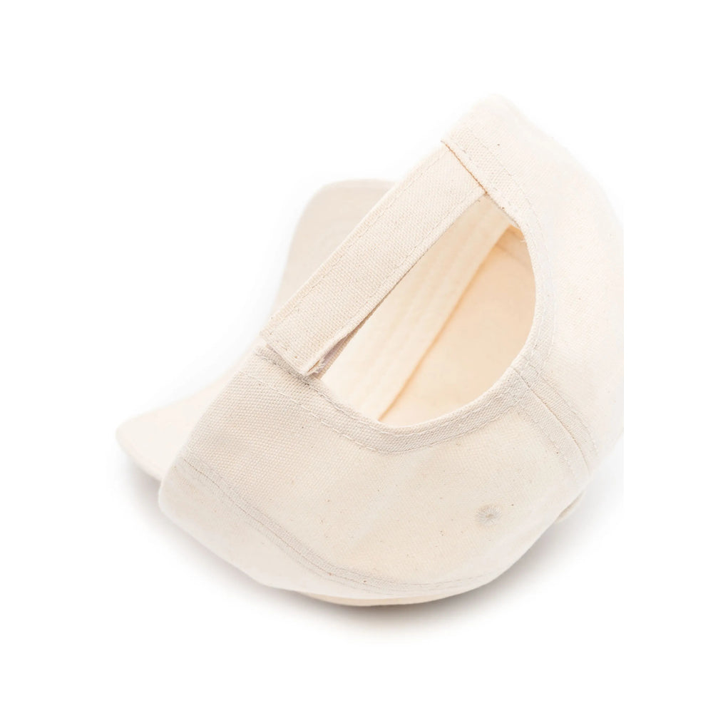 light beige cotton canvas six-panel construction eyelet vents embroidered logo to the front cut-out detailing adjustable strap to the rear curved peak pull-on style