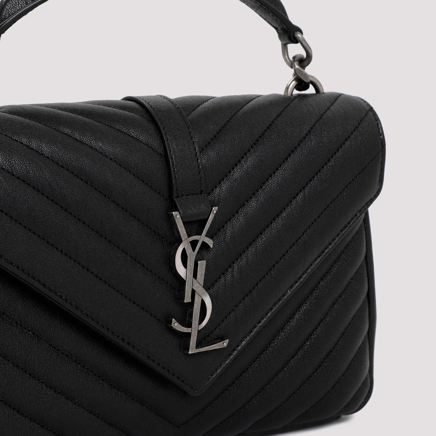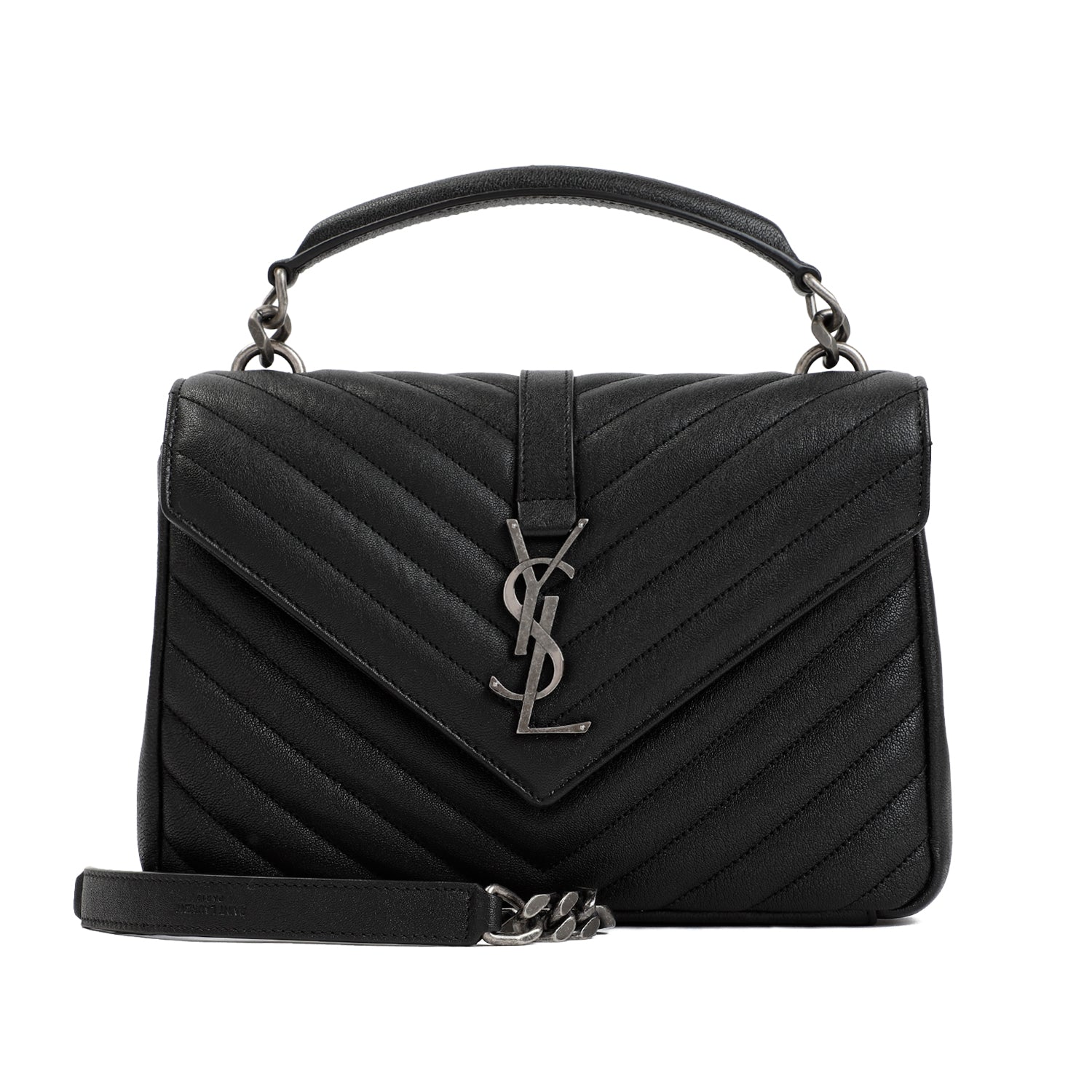 Saint Laurent Black Matelassé Leather Bag. Crafted in pure black matelassé leather, silver hardware, metallic logo on front, top handle, adjustable and removable strap leather.