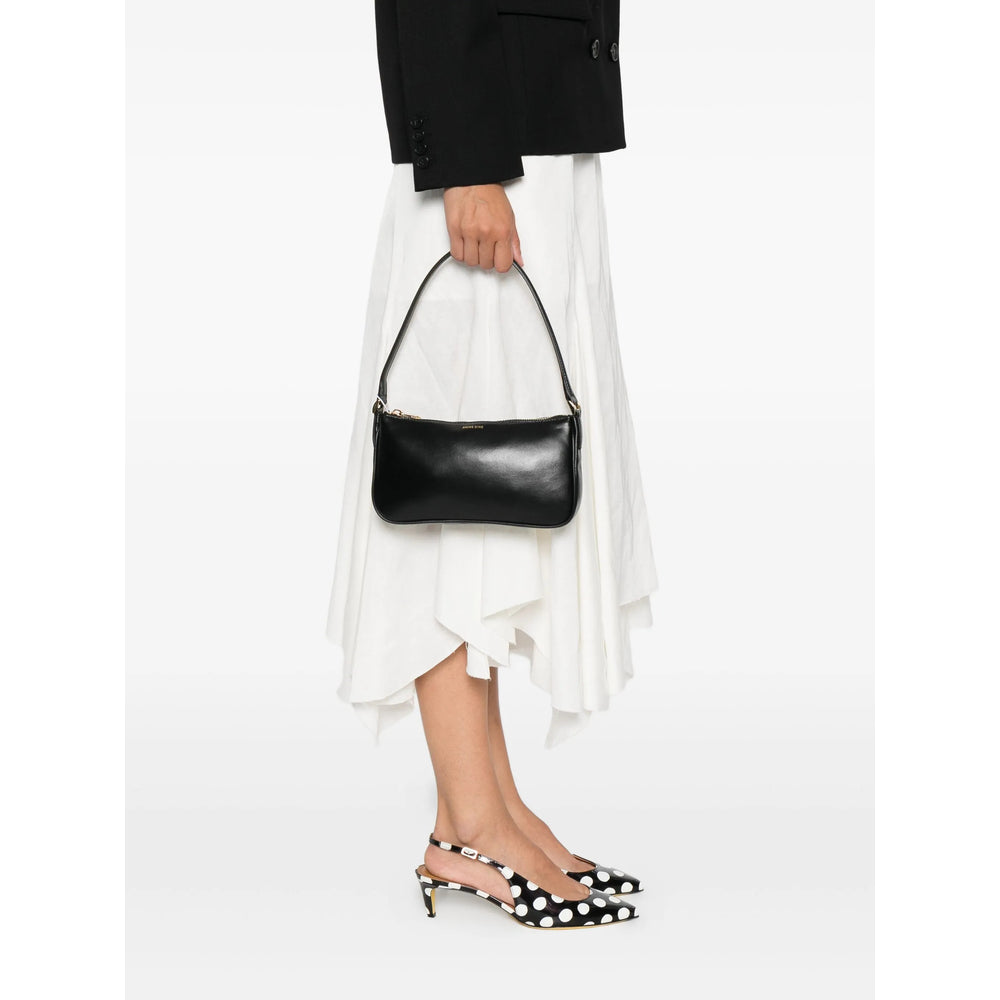 black calf leather top zip fastening single top handle gold-tone logo lettering