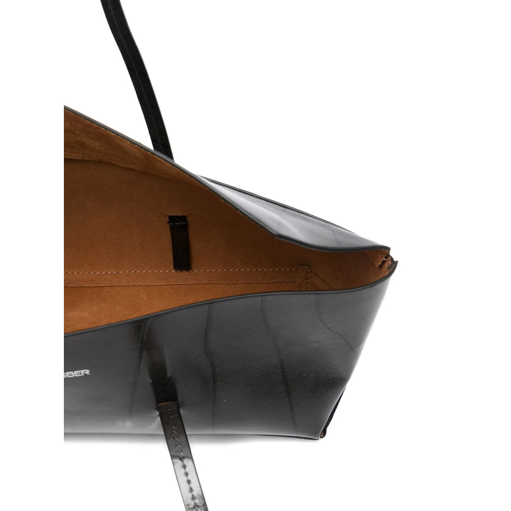 black patent leather leaf pattern top handles boat shape