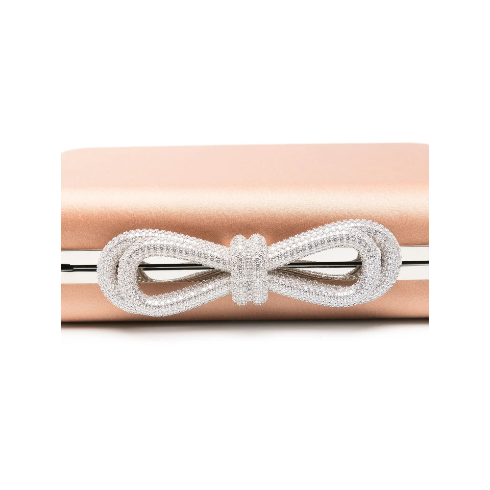 golden brown satin finish crystal-embellished bow clasp closure detachable chain-strap