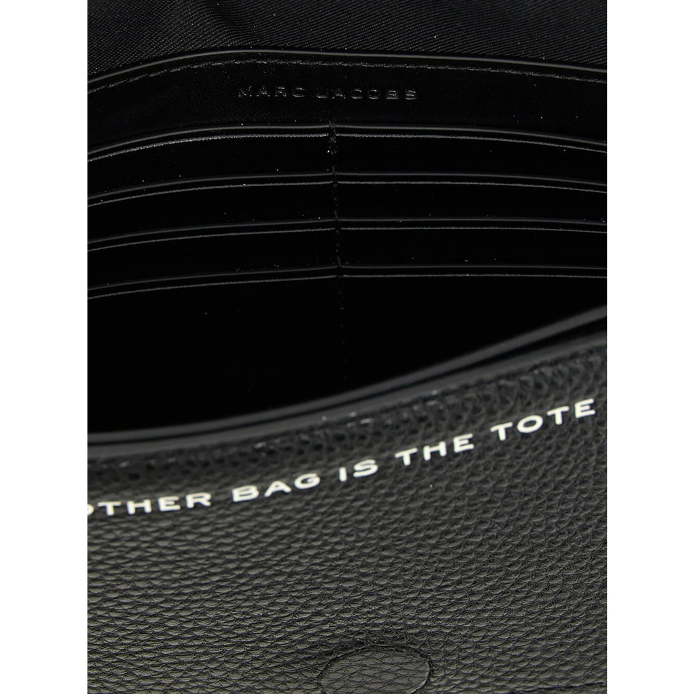 black embossed logo chain print magnetic flap closure adjustable removable shoulder strap stitched detailing