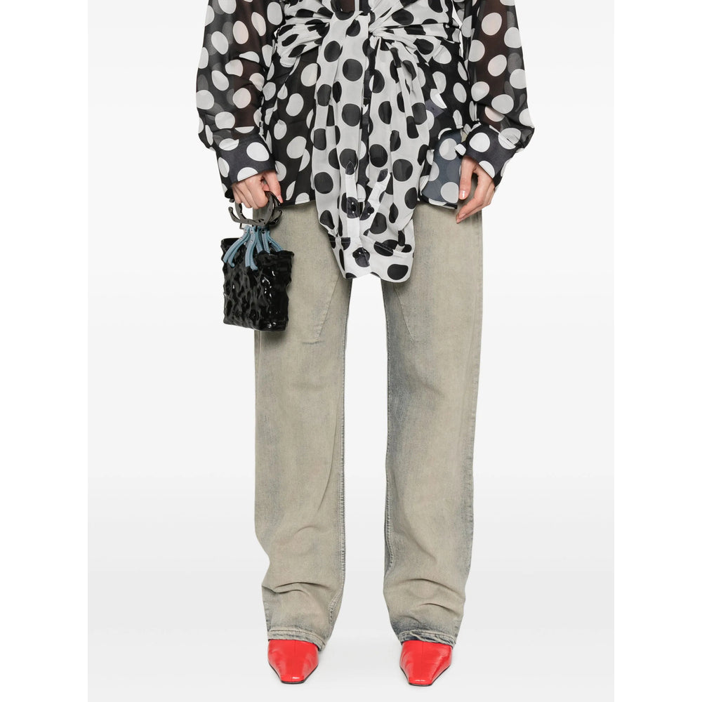 black carabiner handle light-blue leather straps gunmetal silver-tone hardware embossed logo