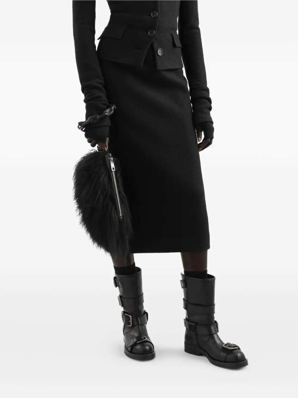 Clutch con zip Origine: Italia Caratteristiche nero bordo in pelliccia Mongolian chiusura con zip tasca portacarte interna Composizione Lana della Mongolia 90%, pelle di vitello 10% ID BI3436AW658 Misure prodotto Profondità 1 cm Altezza 14 cm Larghezza 24 cm