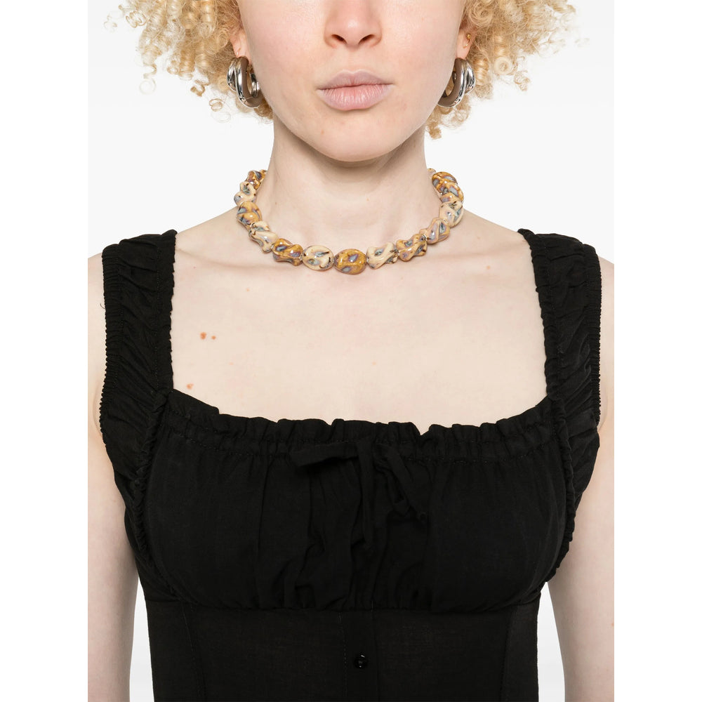 black front button fastening square neck sleeveless full lining