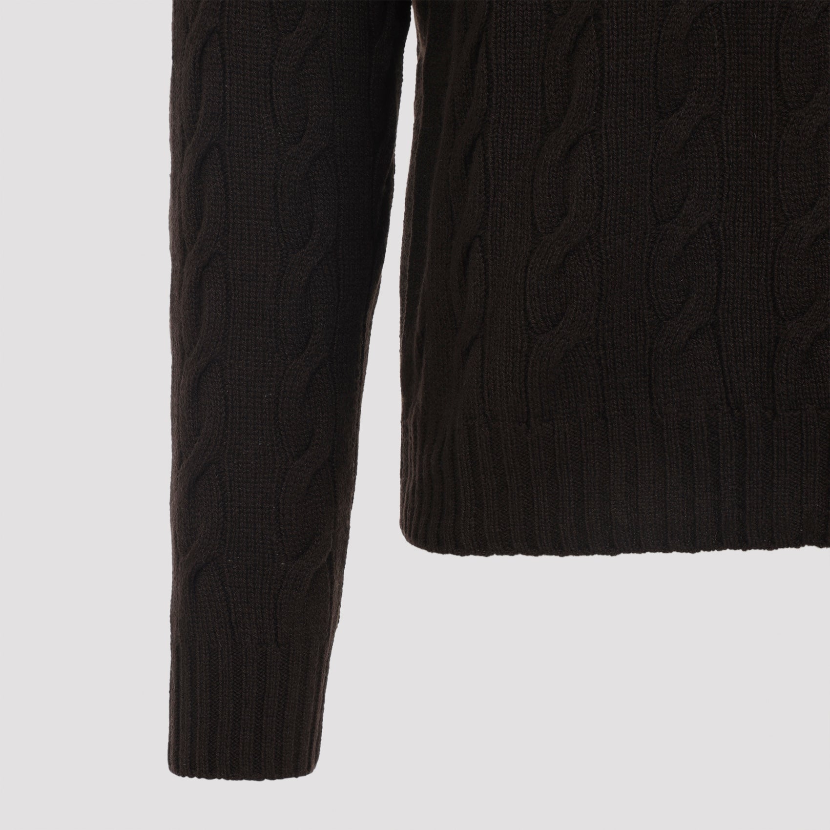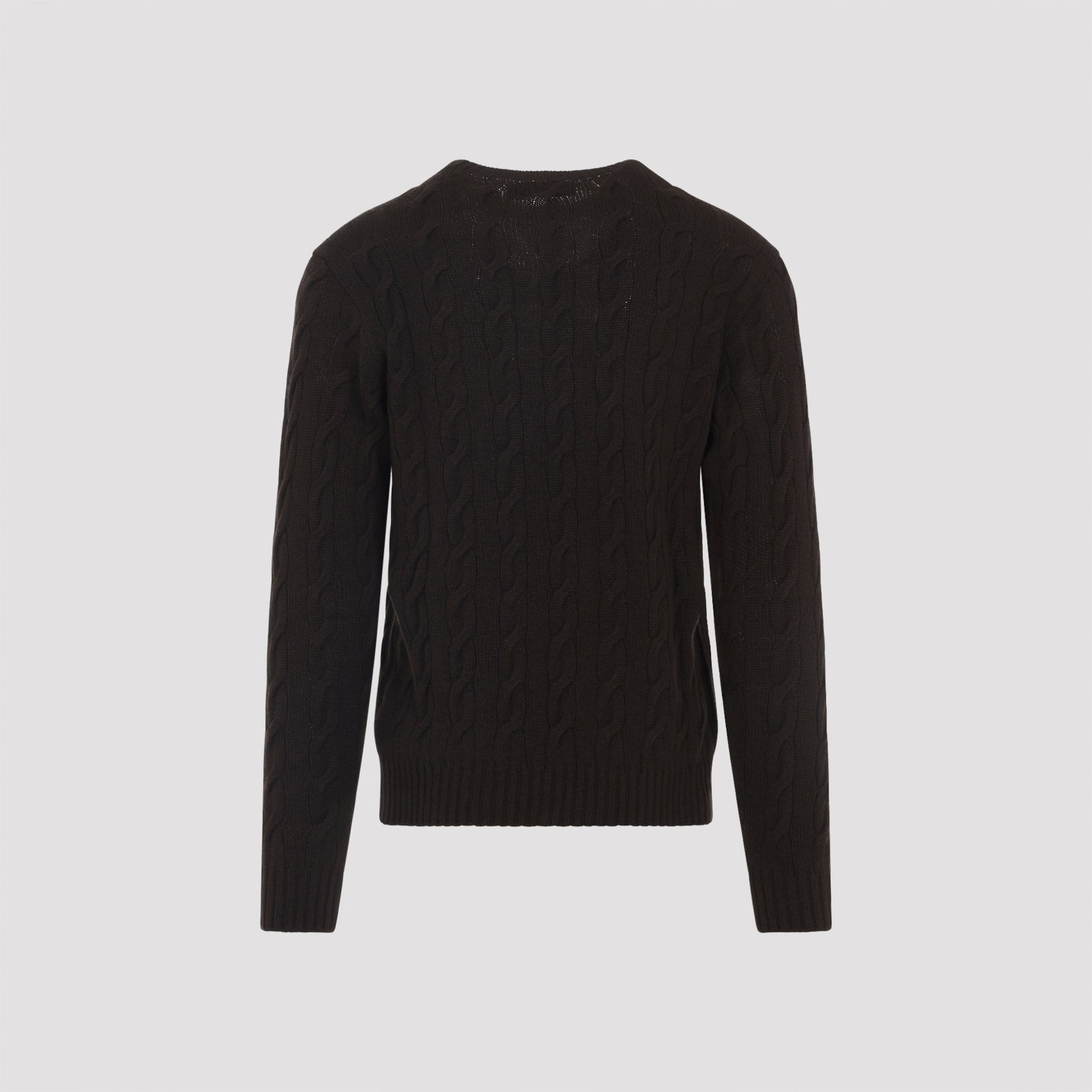 Ralph Lauren Purple Label Cable Dark Brown Cashmere Pullover. Crafted from dark brown cashmere, cable knit all over, crew neck, long sleeves, ribbed edges.