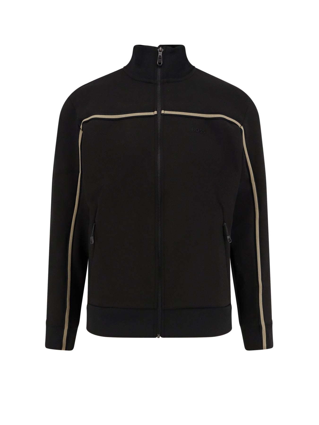 Zip closure and side zip pockets Long sleeve with cuff Rubber logo patch on the front Ribbed profiles 62% cotton 33% polyester 5% elastane SKU: 50523896_001