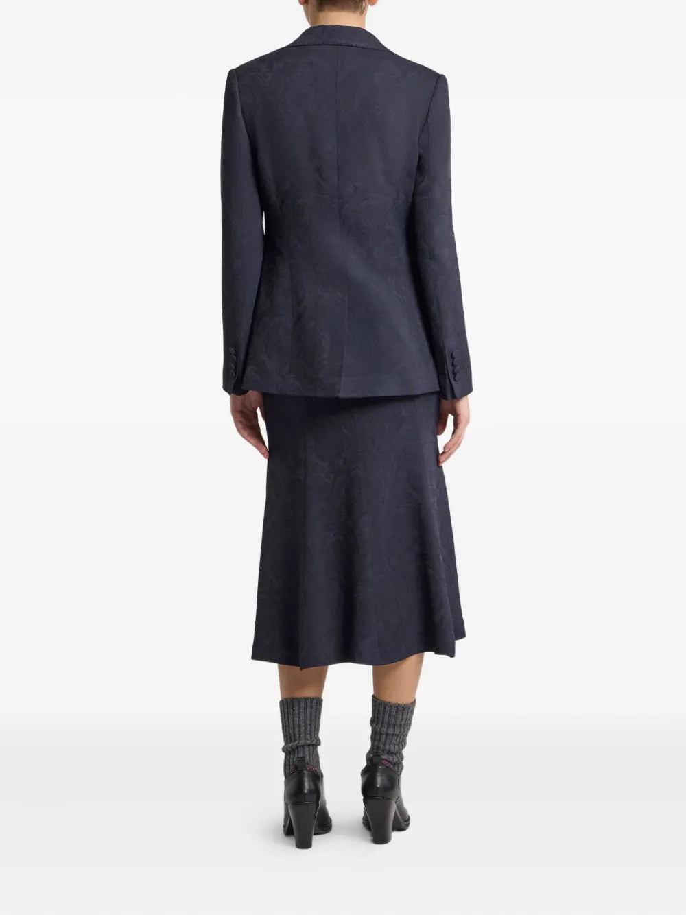 Blazer con stampa paisley Origine: Italia Caratteristiche blu scuro motivo Paisley chiusura con due bottoni revers classici tasche a filetto tessuto in cady elasticizzato Composizione Esterno: viscosa 97%, elastam 3% Fodera: viscosa 52%, acetato 48% Istruzioni per il lavaggio Leggi le indicazioni del produttore ID WRCA003499TJD89