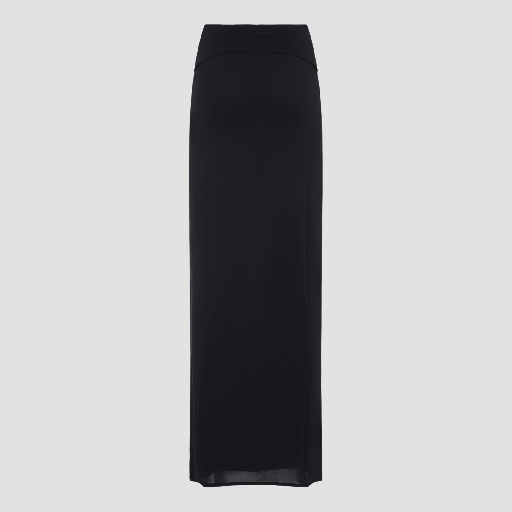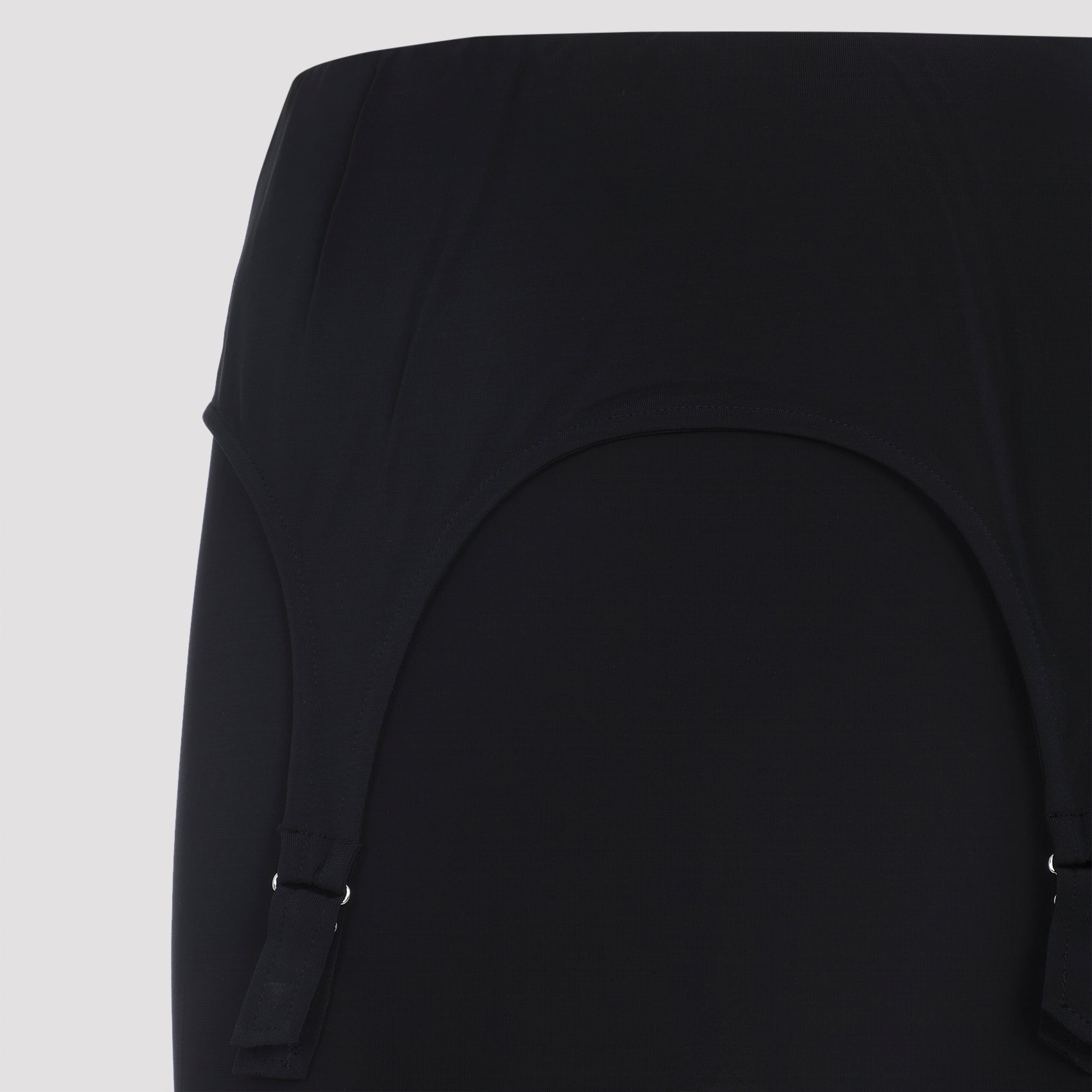 Jean Paul Gaultier Lingerie Garter Blue Rayon Long Skirt. Crafted from fine dark blue stretch rayon, turn-down waistband with lingerie garters details, full length.