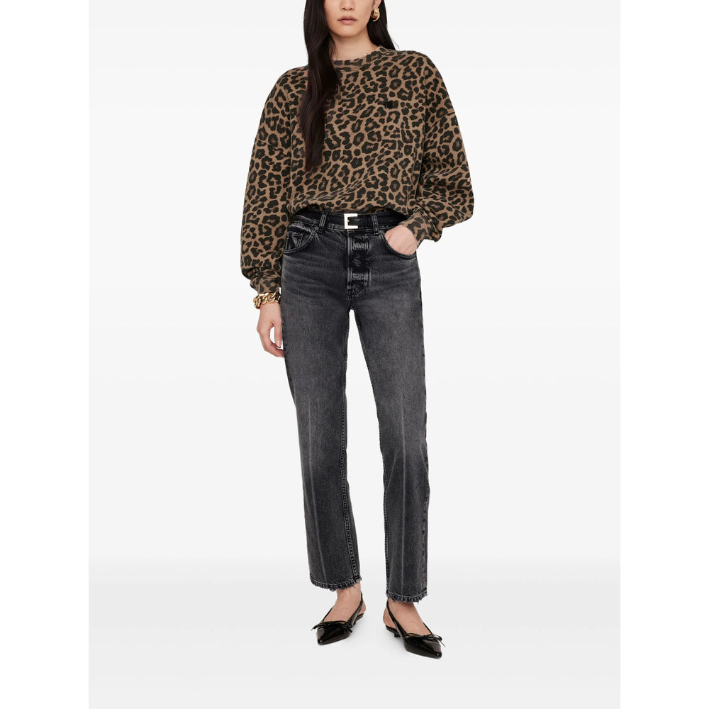 brown crew neck long sleeves ribbed cuffs and hem leopard print