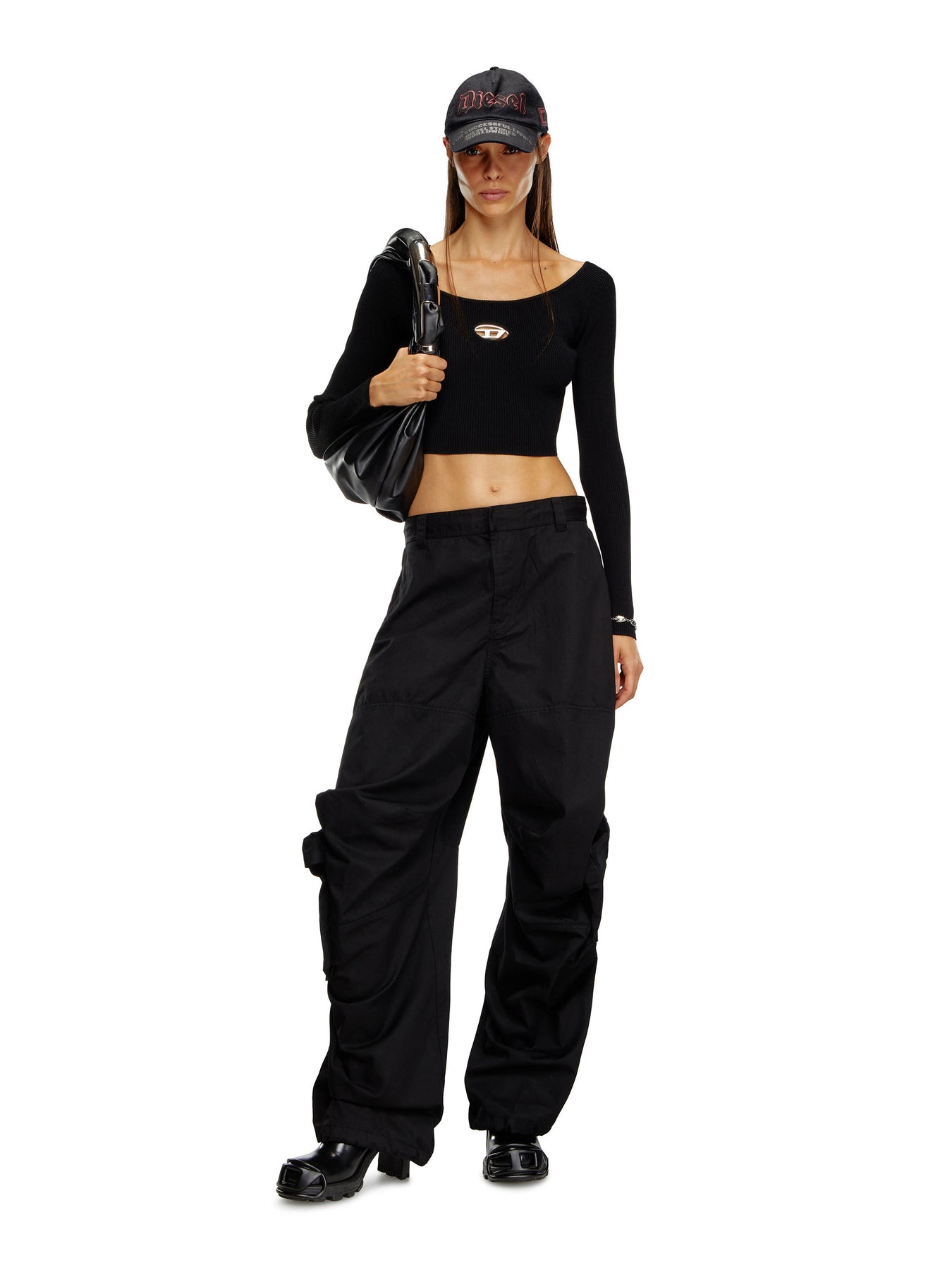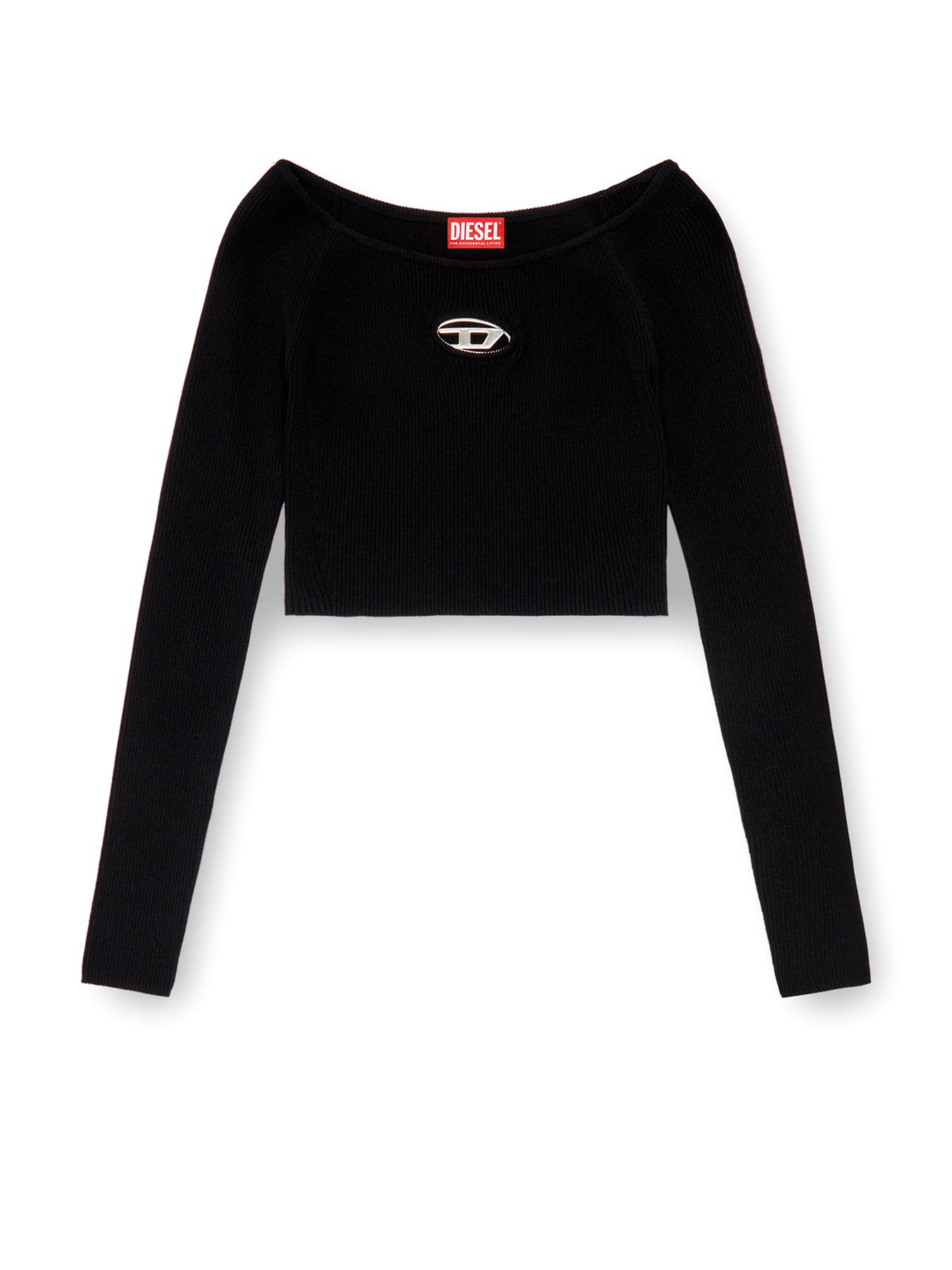 Round neckline Long sleeves Metal cut-out oval-D logo Crop and slim fit 83% sustainable viscose, 17% polyester SKU: A141890DLAX9XX