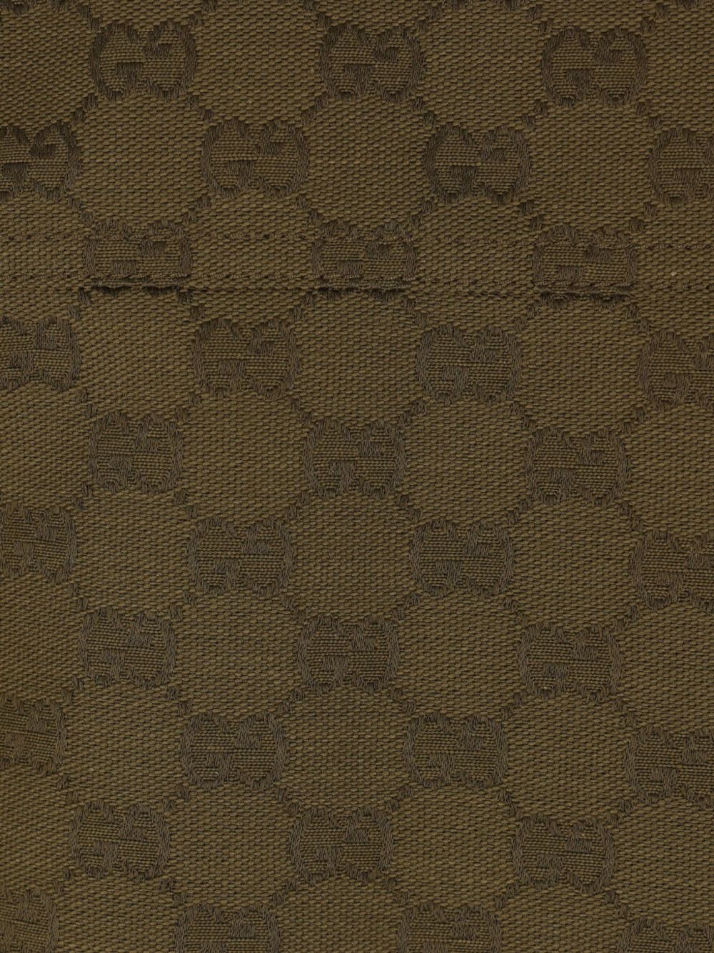 olive green GG monogram pattern zip front fastening leather collar long sleeves