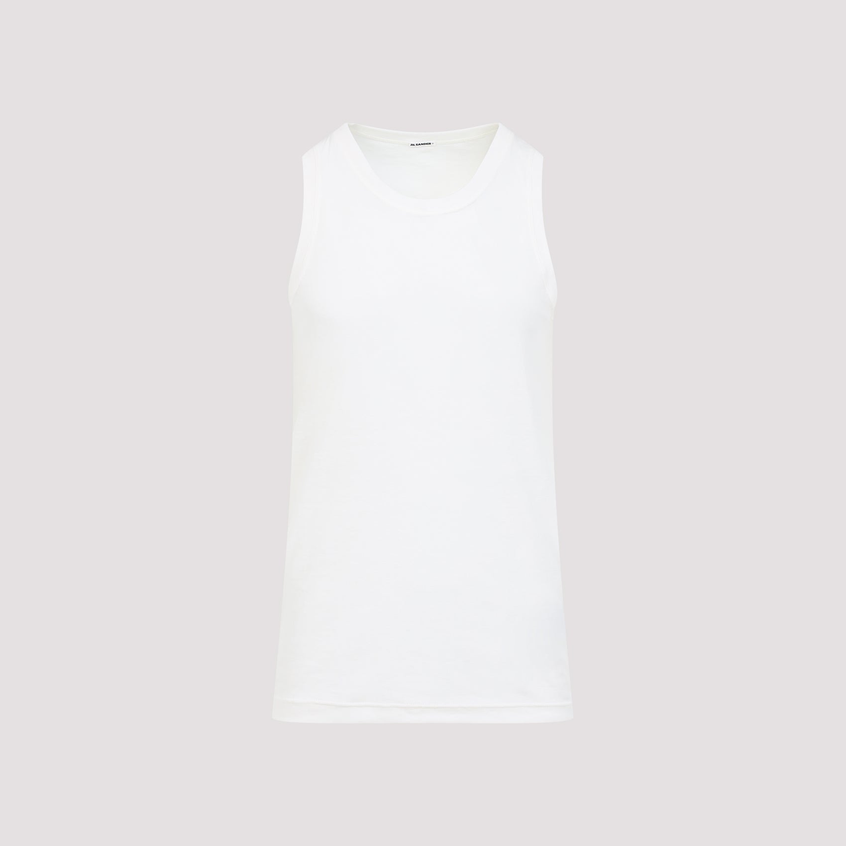Jil Sander+ Kit SS Grey and White Cotton T-shirt. Kit of three, two t-shirt and one tank top. T-shirts crafted from white and melange grey cotton, round neckline, short sleeves and straight hem. White tank top crafted from cotton, round neckline, sleeveless and straight hem. Regular fit.
