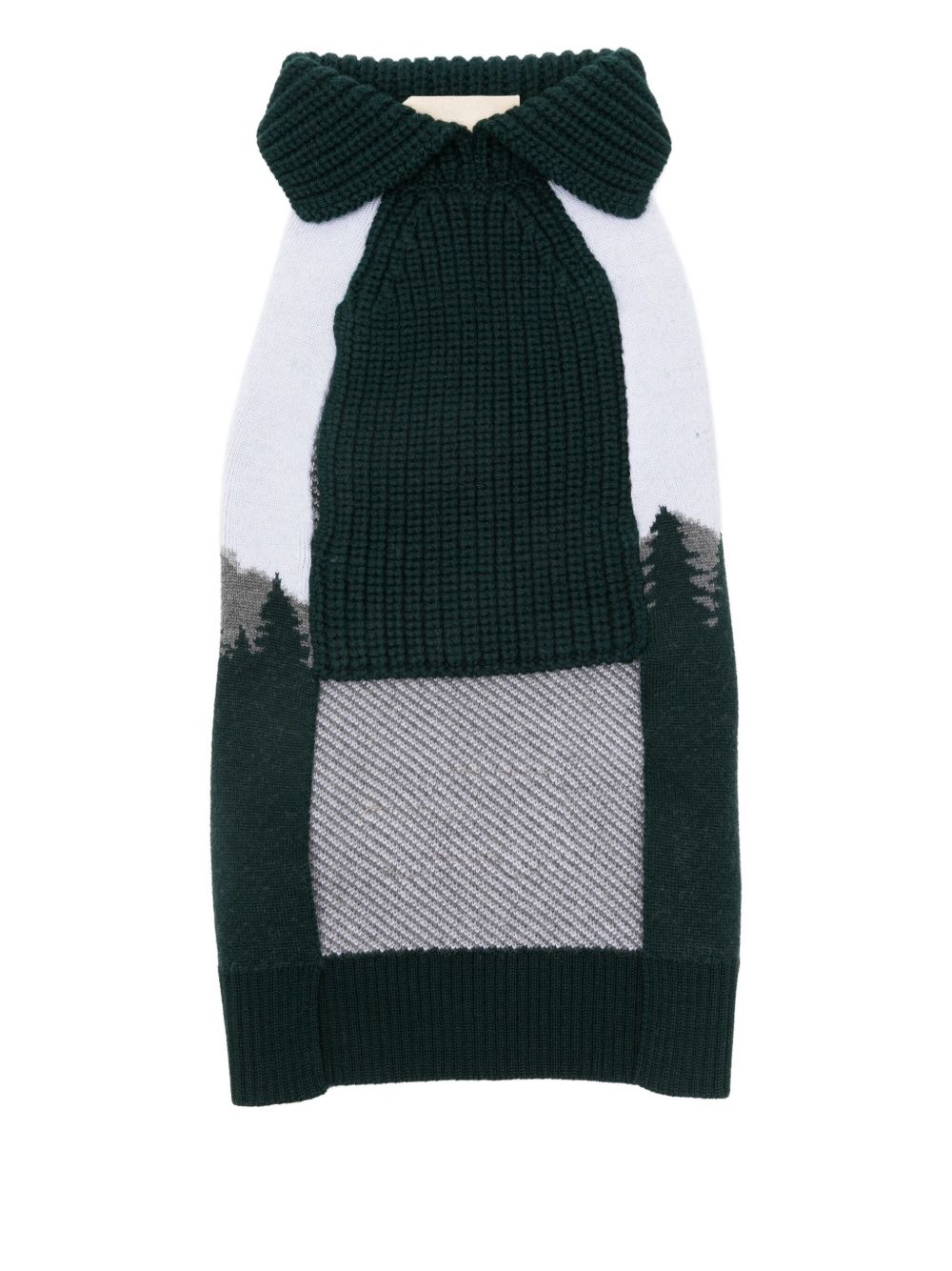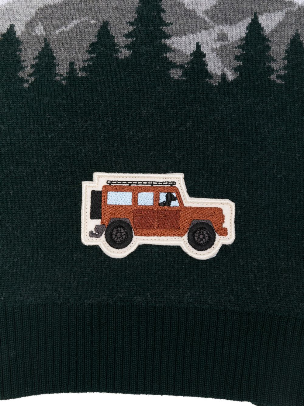 green mountain design vehicle appliqué ribbed knit roll neck sleeveless
