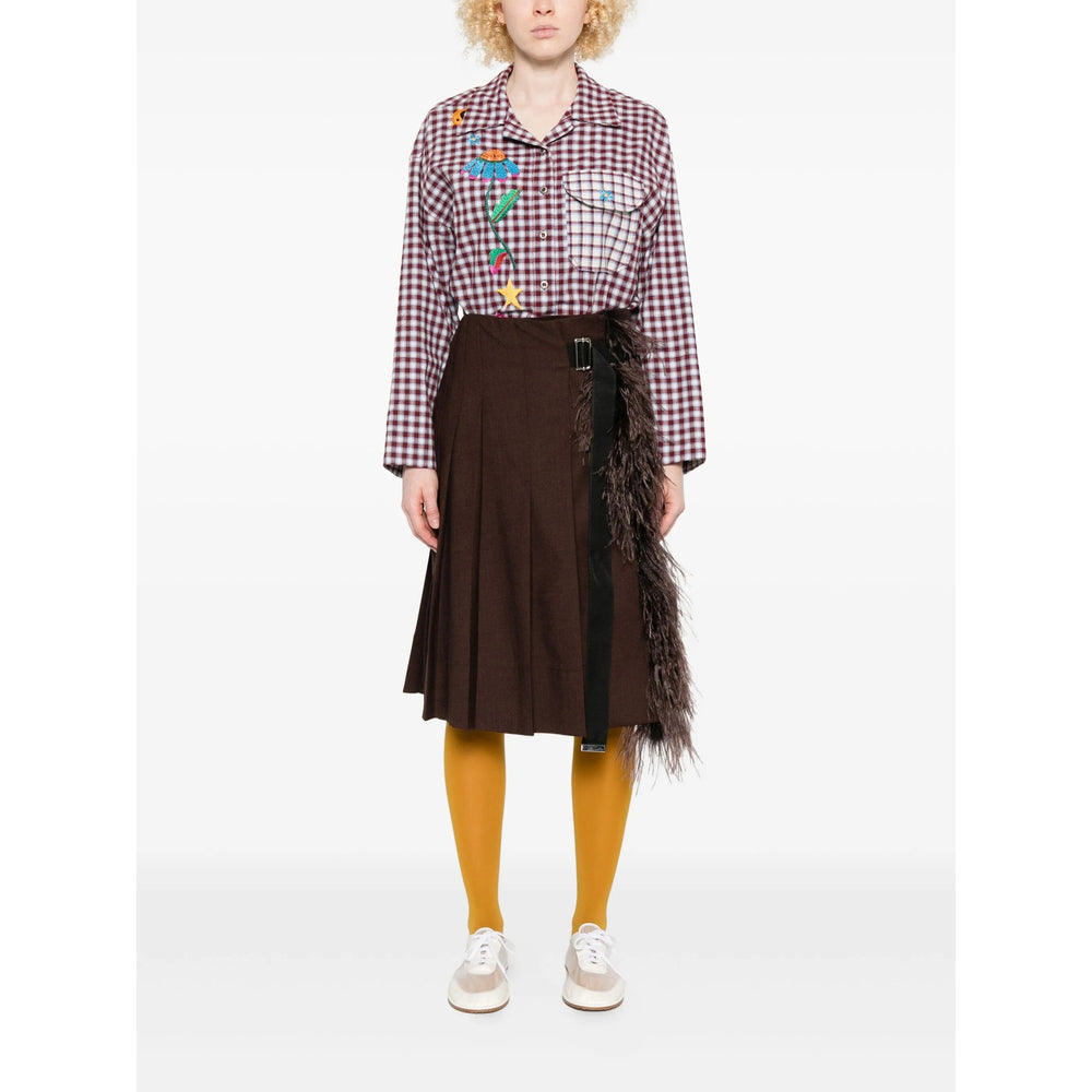 red gingham check pattern embroidered floral motif long sleeves button fastening patch pocket