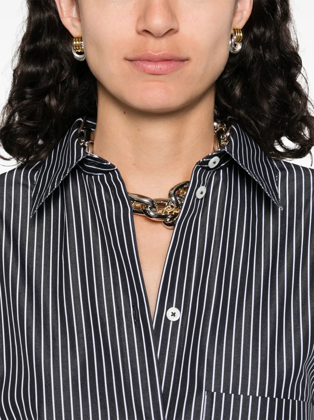 Chemisier a righe Caratteristiche nero chiusura frontale con abbottonatura polsini con bottone colletto classico orlo curvo Composizione cotone biologico 100% Istruzioni per il lavaggio Lavare in lavatrice ID 253WRD0201FB0436