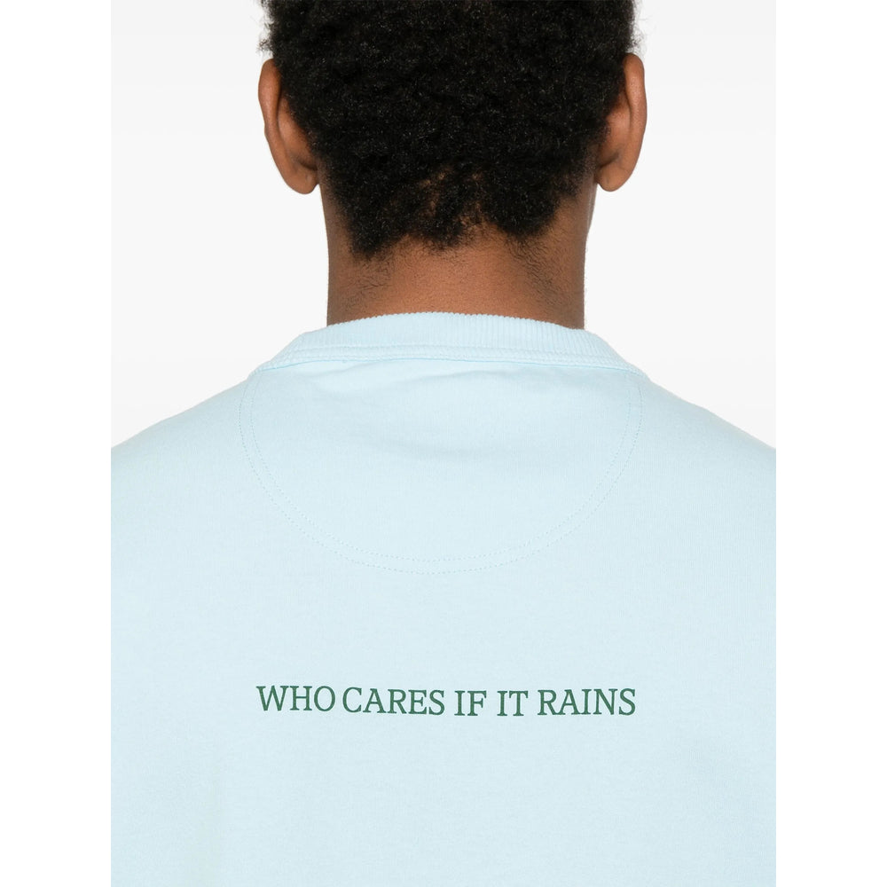 light blue crew neck short sleeves photograph print logo print at the sleeve