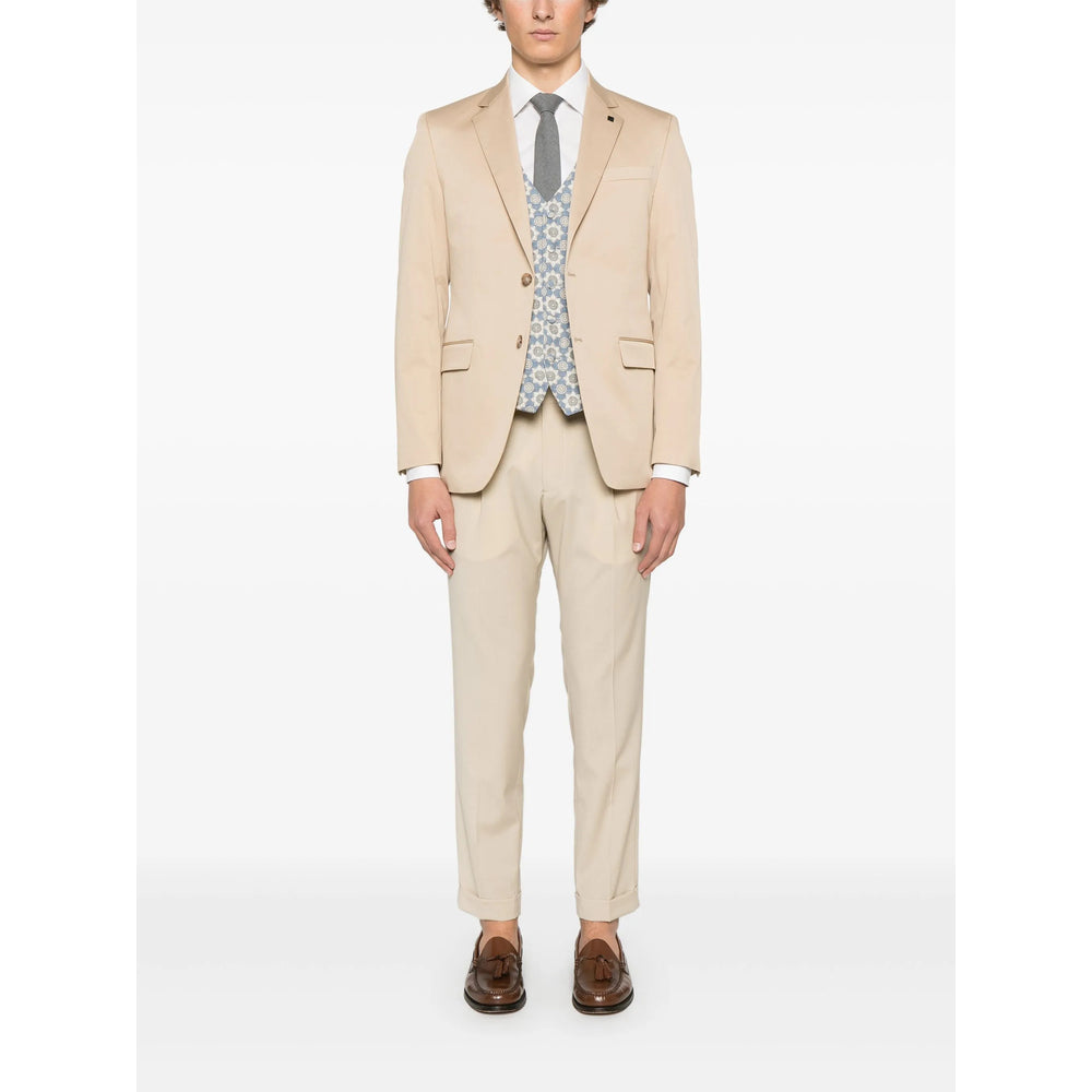 indigo blue front button fastening two front jetted pockets adjustable strap to the rear patterned jacquard
