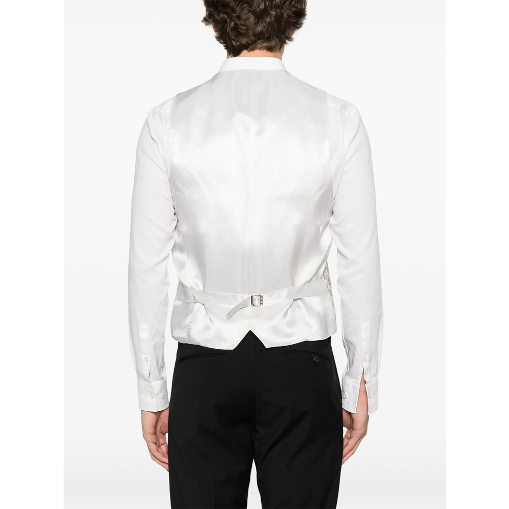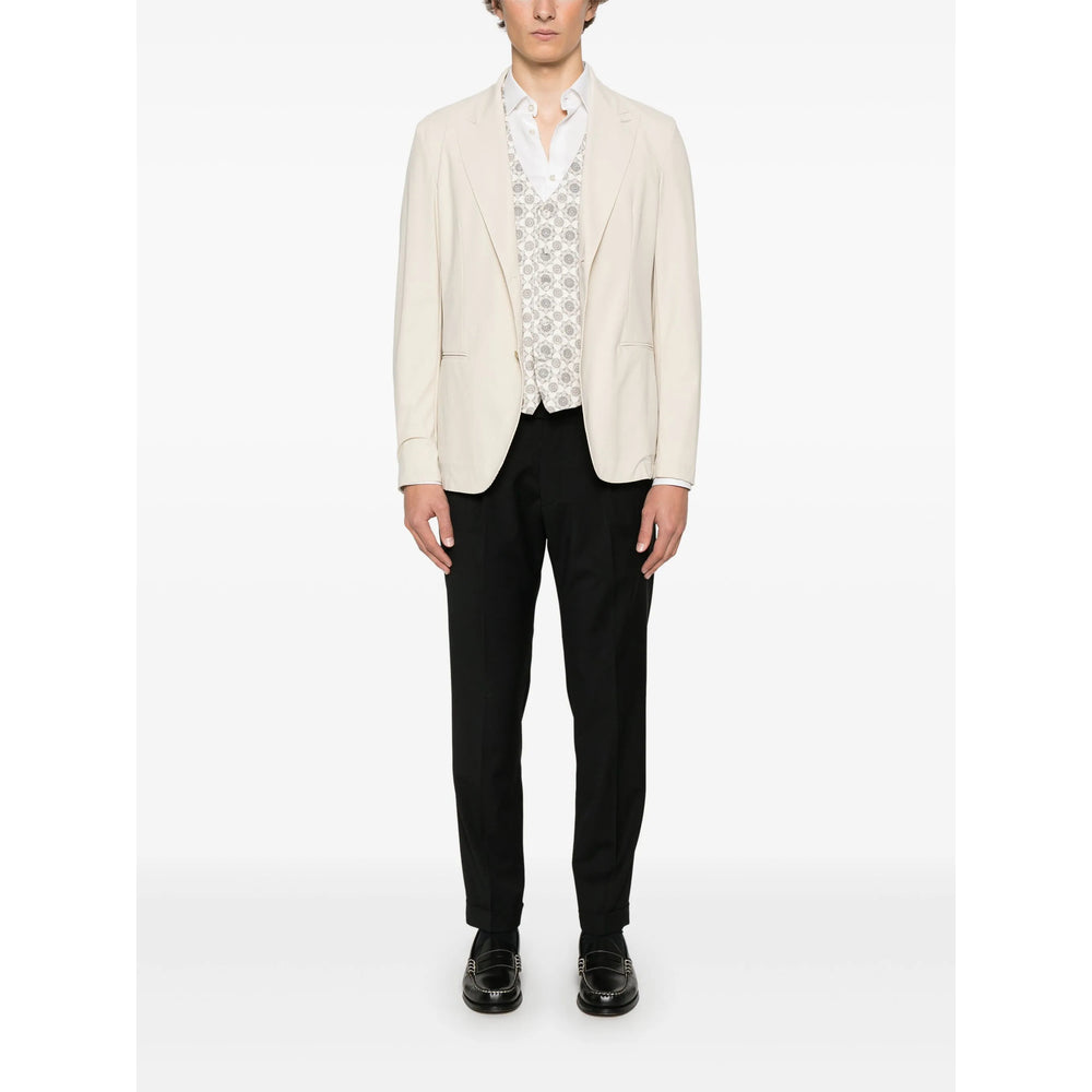 almond beige front button fastening two front jetted pockets adjustable strap to the rear patterned jacquard