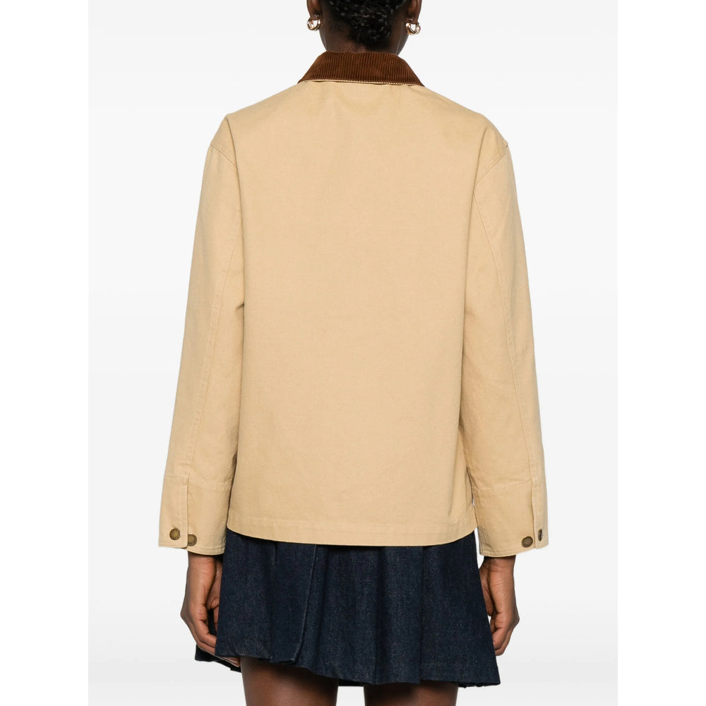 light brown corduroy collar logo patch patch pockets button fastening straight hem