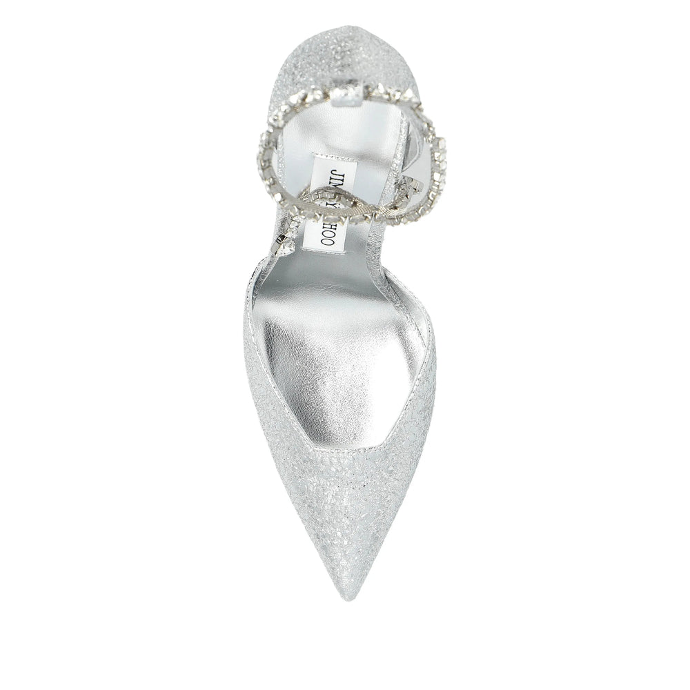 silver glitter finish pointed toe crystal-embellished ankle strap 110mm stiletto heel