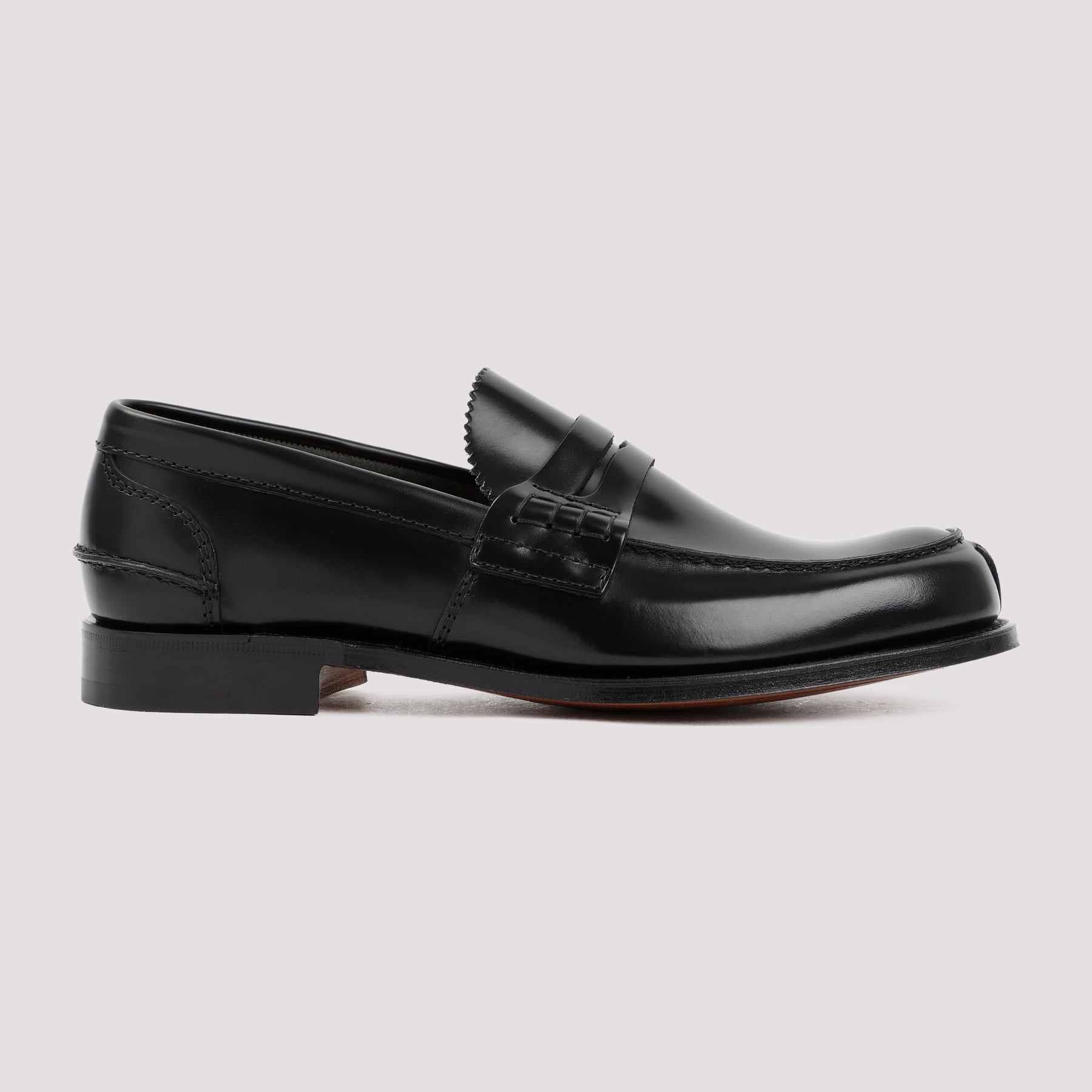 Church`s Black Leather Pembrey Loafers. Black Leather upper, slip-on style, round toeline, flat rubber sole and branded insole.