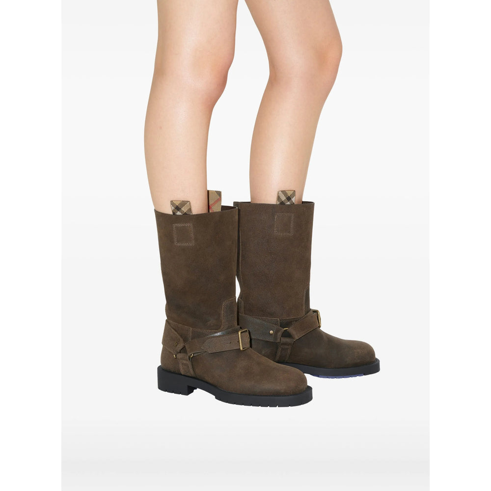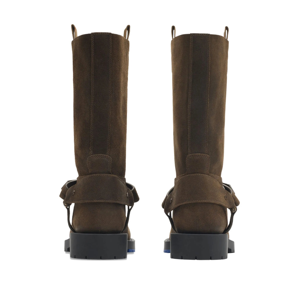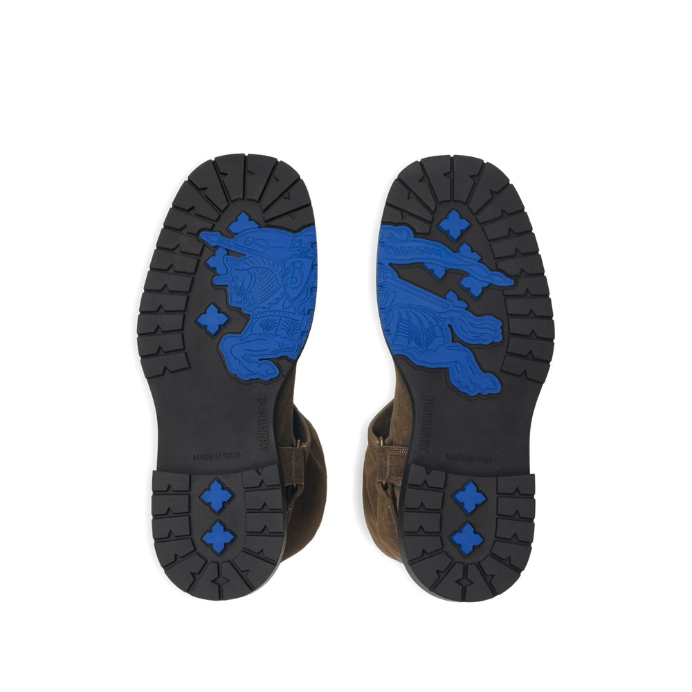 coffee brown double pull-tab at the opening ridged rubber sole round toe