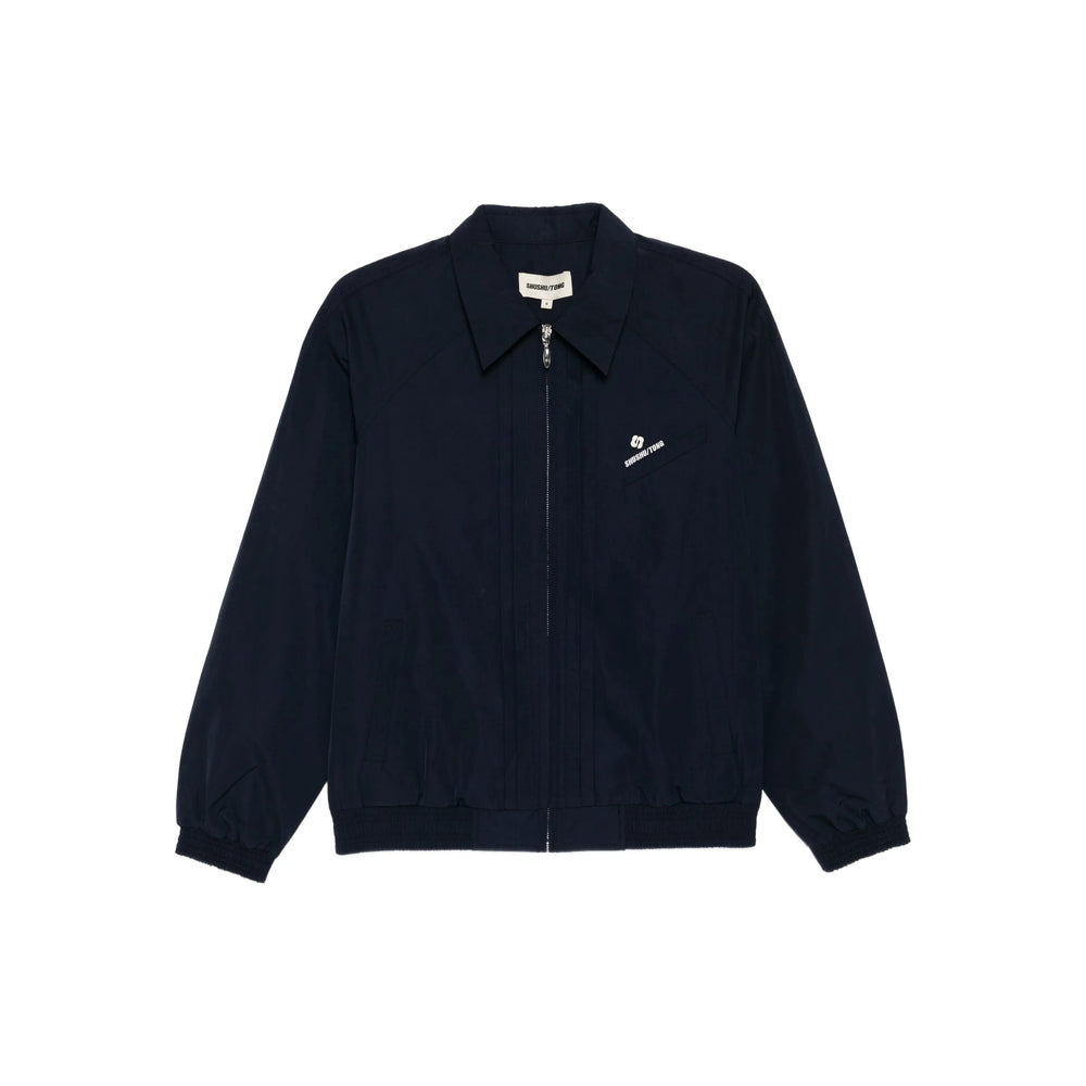 dark blue front zip fastening embroidered logo at the chest long sleeves