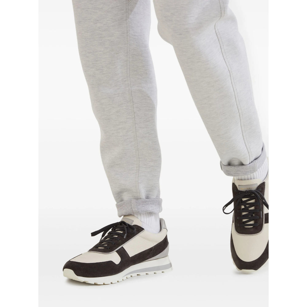 off-white leather upper suede heel panel lace-up fastening flat sole round toe