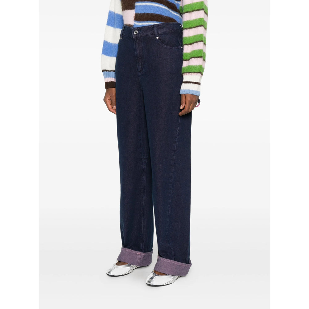 dark blue carabiner detail contrast stitching straight leg high waist cuffed hems