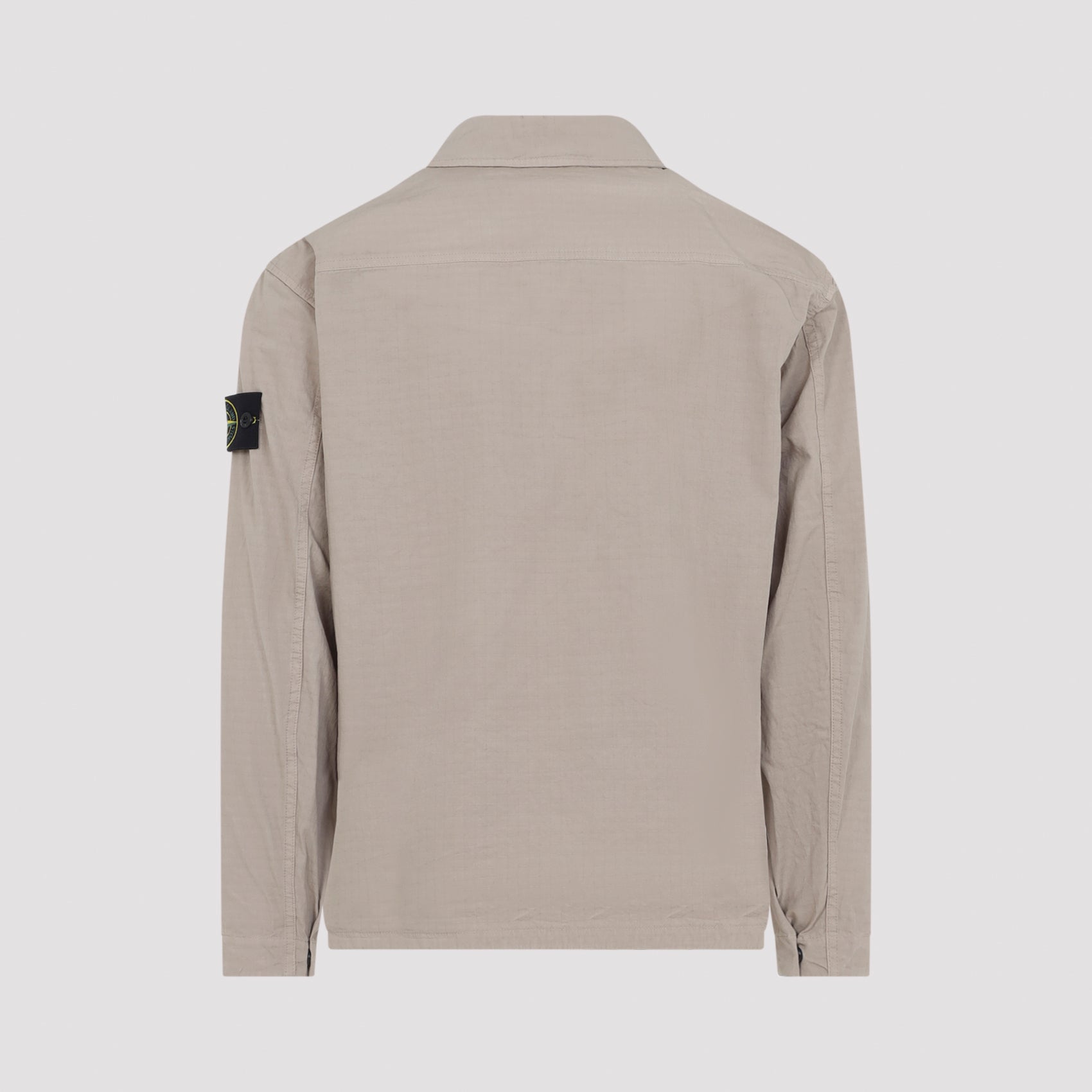 Stone Island Beige Cotone Camicia. Realizzata in cotone ripstop beige, con colletto a punta, chiusura con zip frontale, due tasche patch riportate sul petto, patch logo sulla manica, maniche lunghe con polsini abbottonati, spallaccio posteriore e orlo diritto.