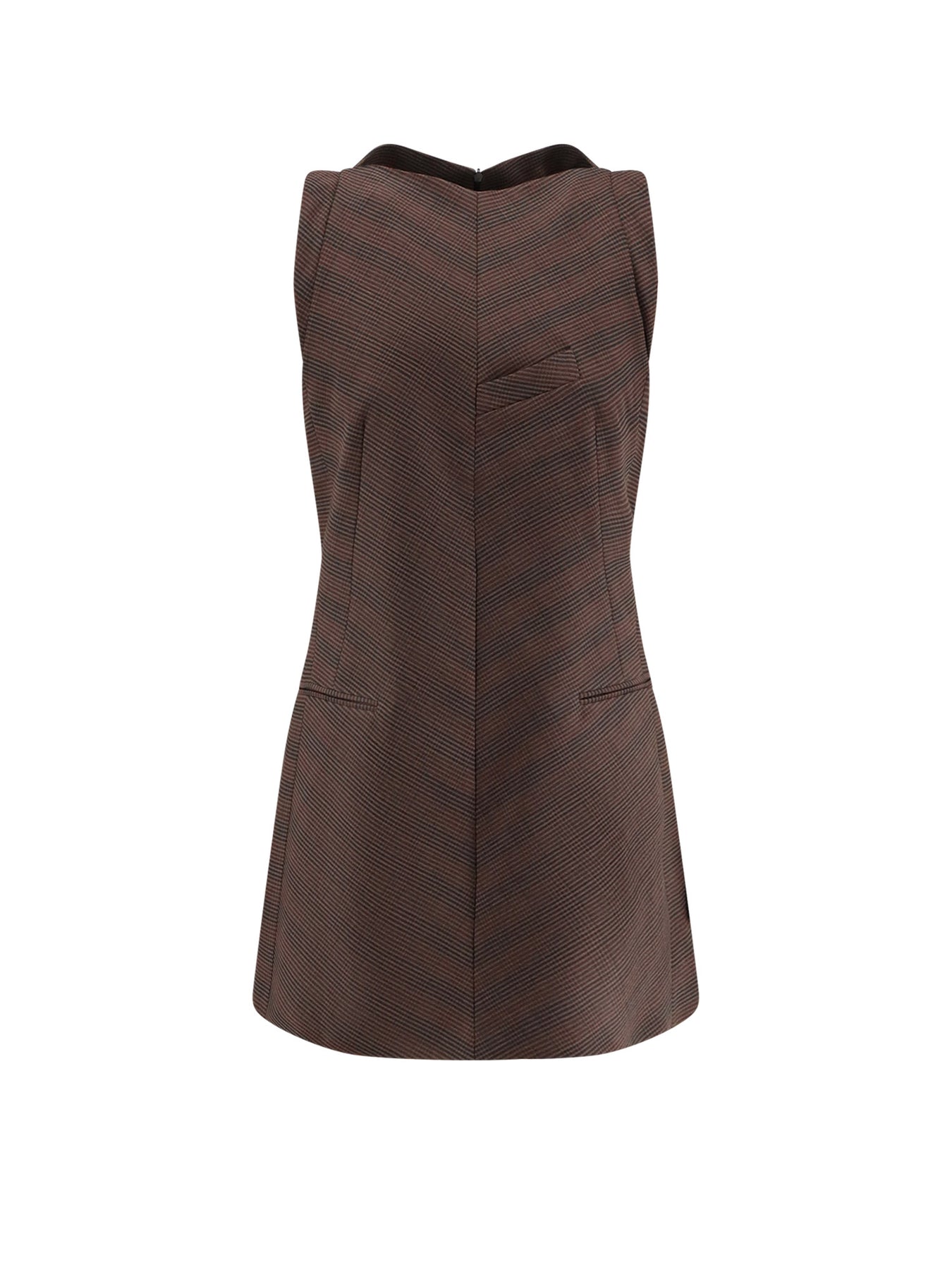 Hidden back zip closure Sleeveless Two front flap pockets and one breast pocket Made in Italy 53% polyester 43% virgin wool 4% elastane Lining: 100% viscose SKU: S52DA0067M35475001F