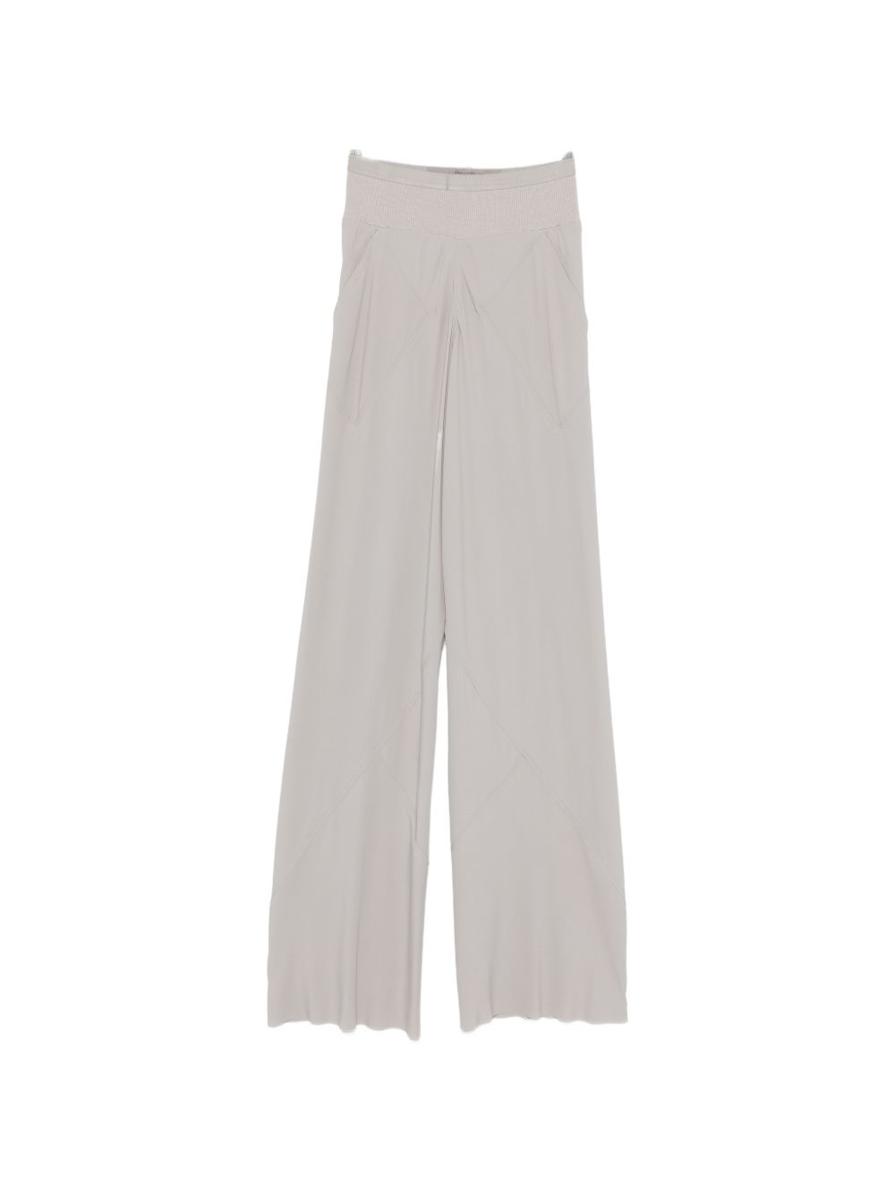grigio con cintura costolata, gamba larga, tasche alle cuciture, design a pannelli