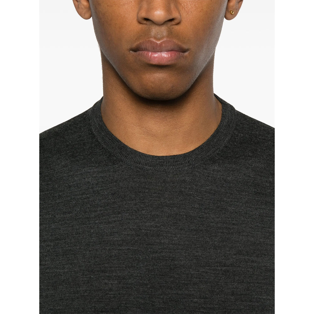 medium grey crew neck ribbed cuffs and hem short sleeves