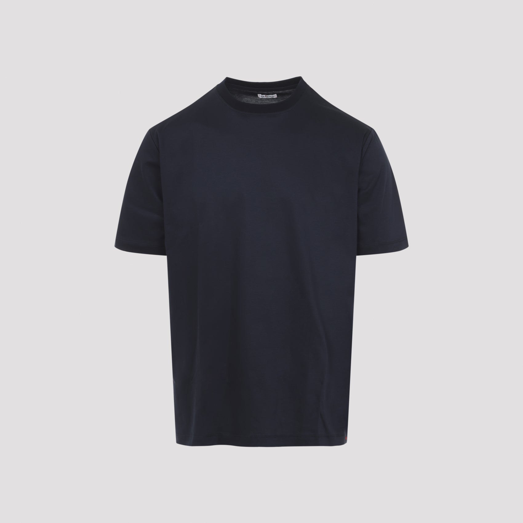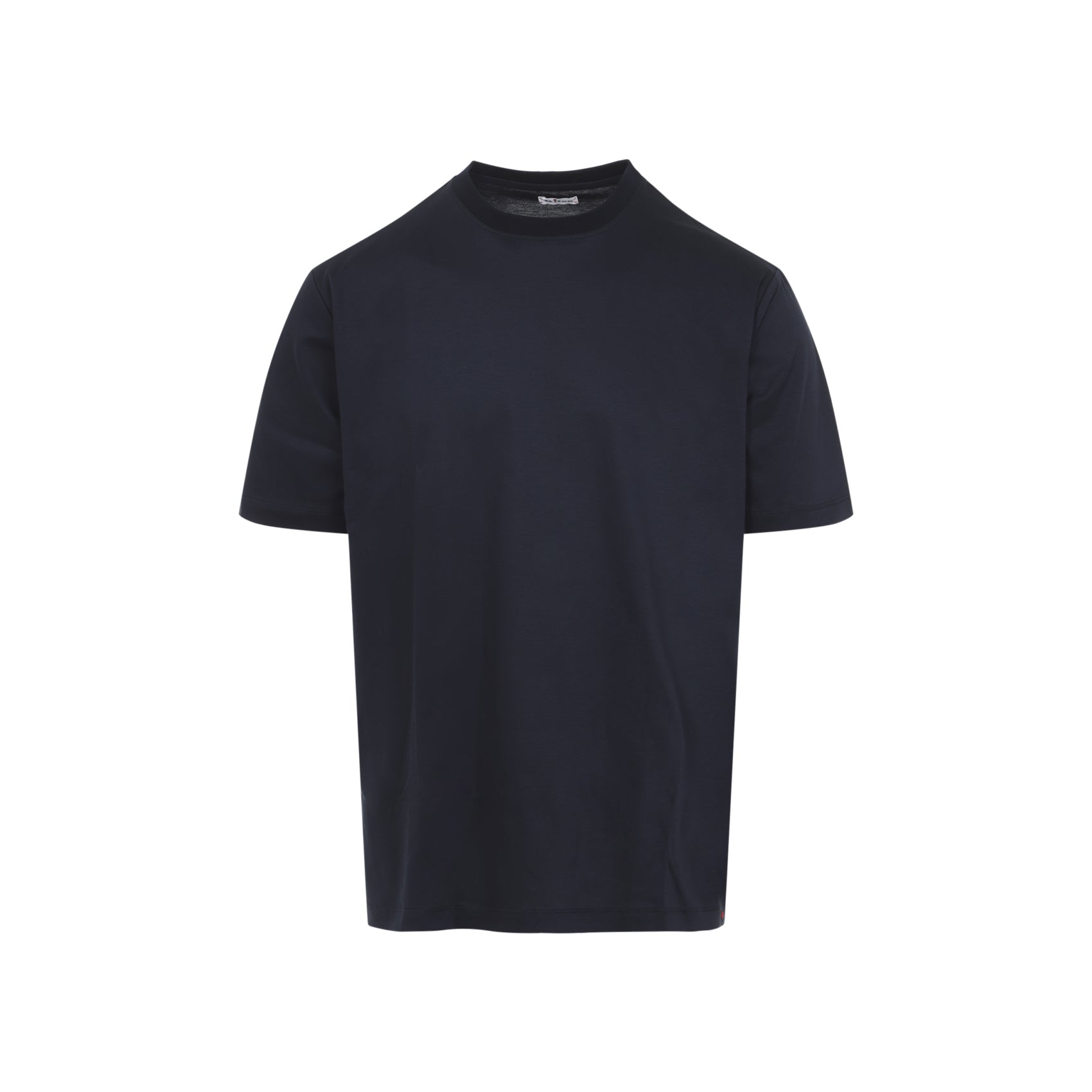 Kiton Milano Blue Cotton T-shirt. The classic t-shirt from Kiton is crafted from high-quality blue cotton jersey. It features a round ribbed neckline, short sleeves, and a straight hem, and has a relaxed fit.