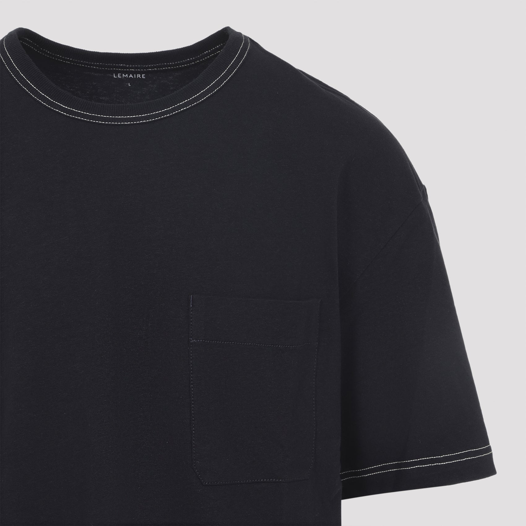 Lemaire Urchin Blue Cotton Boxy Short Sleeves T-Shirt. Crafted in cotton and linen blend. Round neck, chest patch pocket, short sleeves, straight hem.