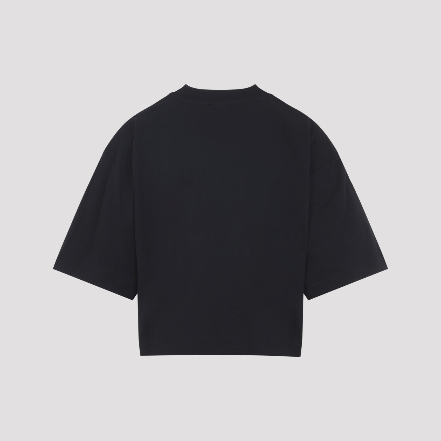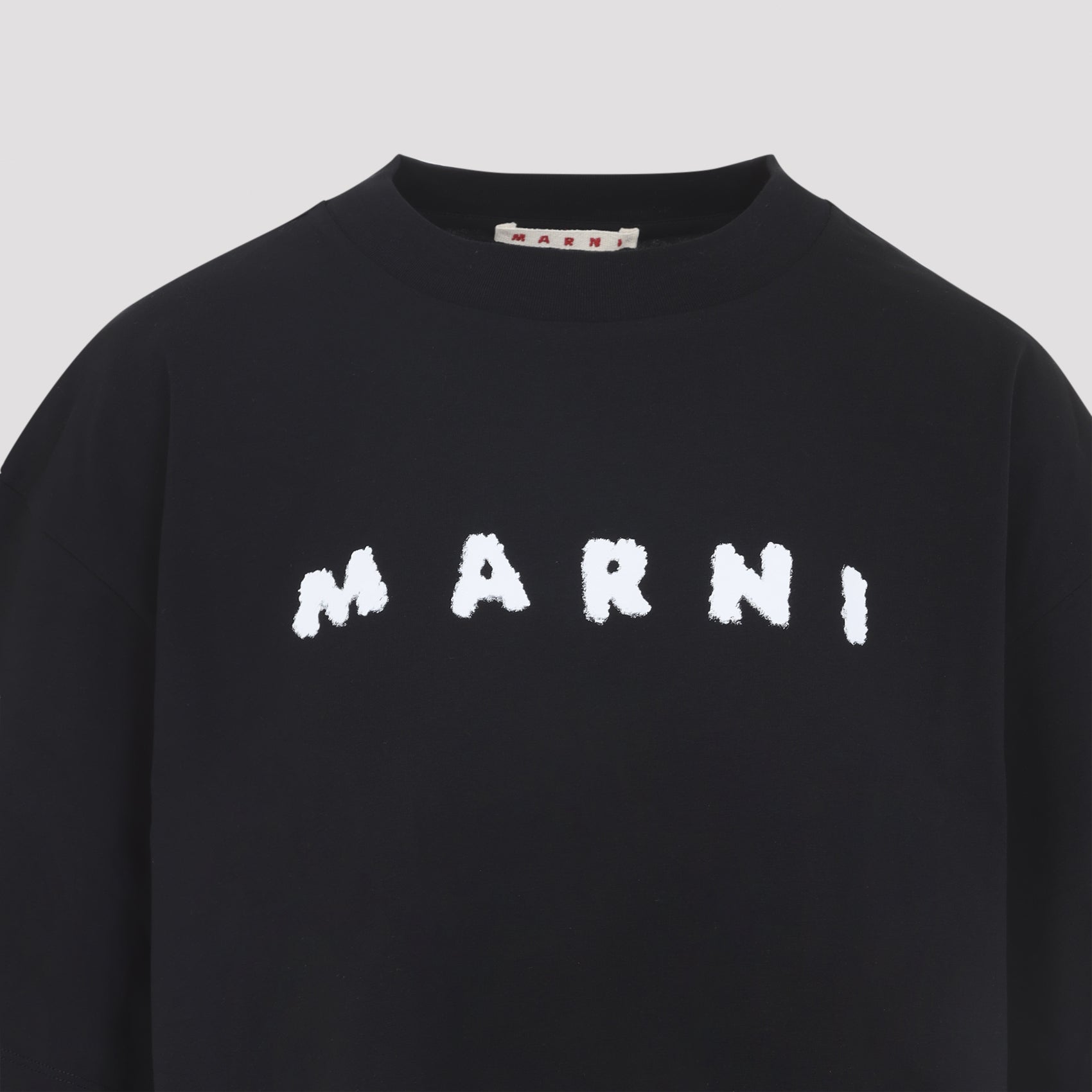 Marni Black Cotton T-Shirt. Pure black cotton t-shirt, round neck, front contrasting white lettering logo, short sleeves, straight hem.